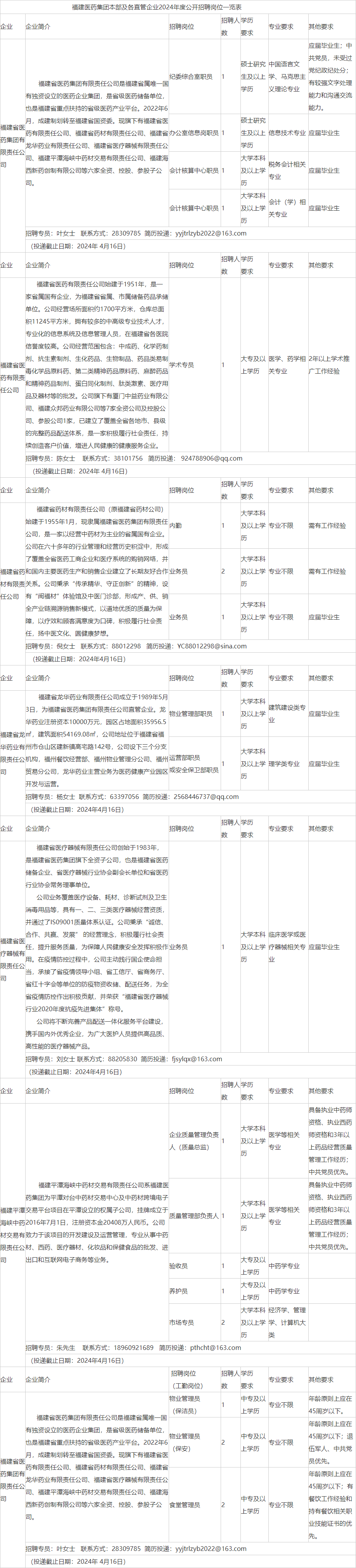 ![]() ![]() ▶招聘单位:福建医药集团本部及各直管企业 ▶报名时间:4月16日前 ▶招考形式:招聘工作按照网上报名、资格审查、笔试与面试、背景调查、体检、公示、决定聘用等程序进行。 ▶招聘岗位:福建医药集团本部及直管企业计划招聘23名工作人员(上下滑动查看↑↓) ![]() ▶相关:活动、课程咨询,点我👈 ▶备考:(福建国企•面试示范作答68题¥2) ![]() 公告原文 根据工作需要,福建医药集团本部及各直管企业计划公开招聘23名工作人员,其中应届毕业生8名,社会招聘10名,工勤岗位5名,现将有关事项公告如下: 一、招聘岗位 (一)应聘人员基本条件: 1坚持党的方针政策,爱企爱岗,认可并愿意践行福建医药集团企业文化。 2.坚持解放思想,实事求是,与时俱进,求真务实,开拓创新。 3.有事业心和责任感,具有大局观念和正确的业绩观,敢于担当,具有履行岗位职责所必需的专业素质。 4.诚实守信、清正廉洁,善于团结同志,作风踏实。 5.身体健康,能够适应工作要求。 6.应聘者除需要符合以上基本条件外,同时还需符合所应聘岗位的相关岗位条件。 (二)有下列情形之一的,不得报名或取消录用资格 1.正在接受司法机关立案侦察或纪检监察机关立案审查的人员。 2.曾被开除公职或受过党纪、政纪处分的人员。 3.受过司法机关刑事处罚的人员。 4.在各级公务员、事业单位招考中被认定有舞弊等严重违反录用纪律行为的人员。 5.法律、规章和其他有关文件规定不得报名的人员。 (三)岗位及条件 福建医药集团本部及直管企业计划招聘23名工作人员。用人单位招聘岗位及具体条件详见附件“福建医药集团本部及各直管企业2024年度公开招聘岗位一览表”。 二、招聘程序 招聘工作按照网上报名、资格审查、笔试与面试、背景调查、体检、公示、决定聘用等程序进行。资格审查贯穿招聘全过程,应聘人员如提供虚假材料,伪造有关证件、材料、信息骗取资格的,以及在笔面试中作弊,一经查实,立即取消参加公开招聘资格或聘用资格。 三、报名须知 1.报名方式:符合条件的应聘人员直接将个人简历投递至应聘企业指定邮箱(邮件请统一命名为:求职岗位+姓名)。应聘人员报名时需(若有)提供下列材料的扫描件:身份证(正反面)、学历、学位、专业技术资格证书、发表的论文或获奖证明材料等。有工作经历的,需提供历次工作变动的劳动合同等相关证明材料(请统一扫描成PDF格式)。 2.报名时间:即日起开始接受报名,截止时间为2024年4月16日。 3.通知形式:招聘工作按照应聘报名、资格审查、笔试、面试、考察、体检等择优录用的程序进行。有关环节的具体安排和要求将另行通知,按照招聘程序未达到相关环节要求的人员,不再另行通知。 2024年4月9日 👇福建国企•专业知识500道大碗题库¥3 (本文内容含推广内容) ![]() ![]() |
