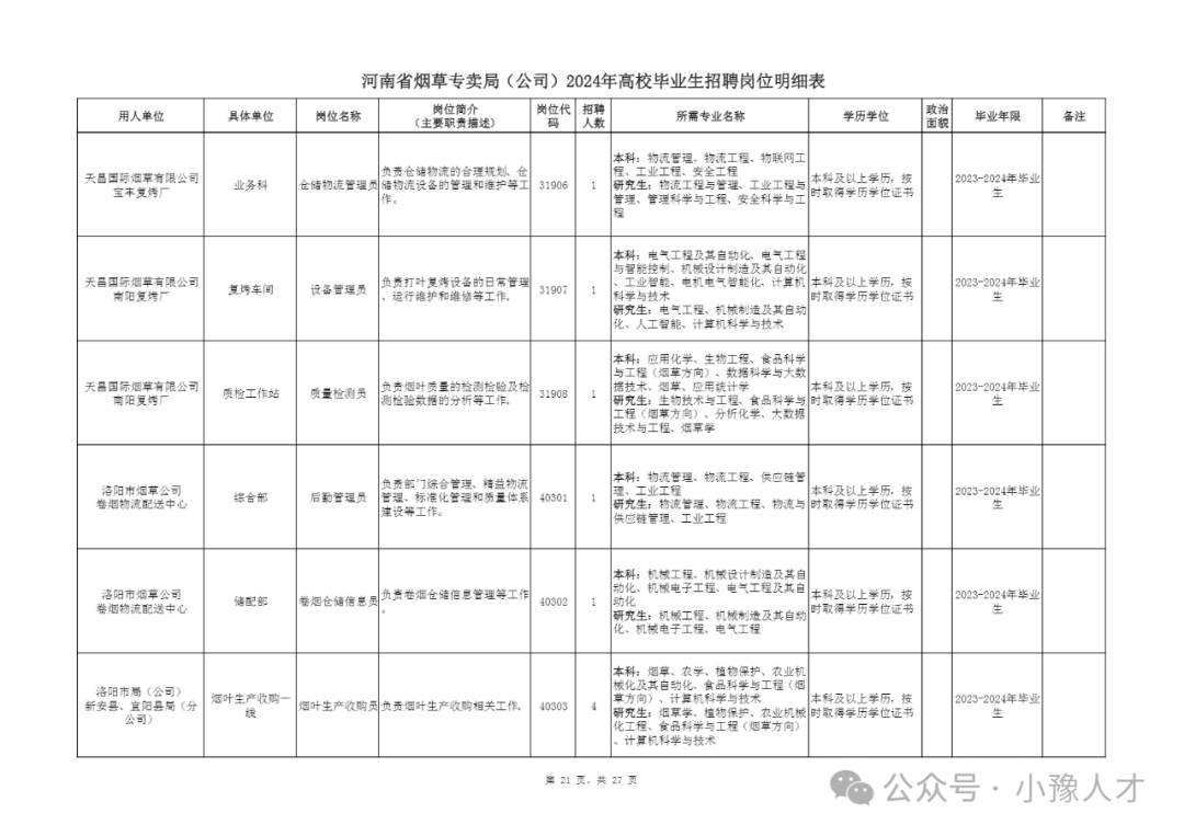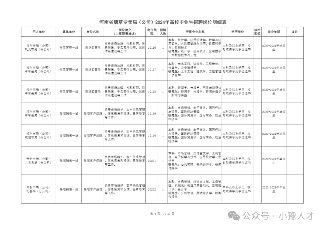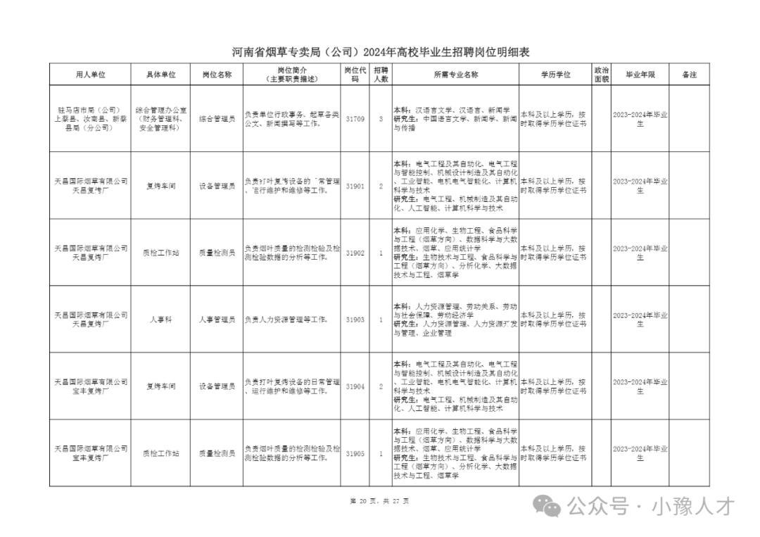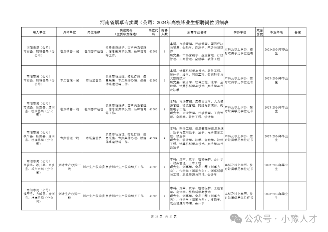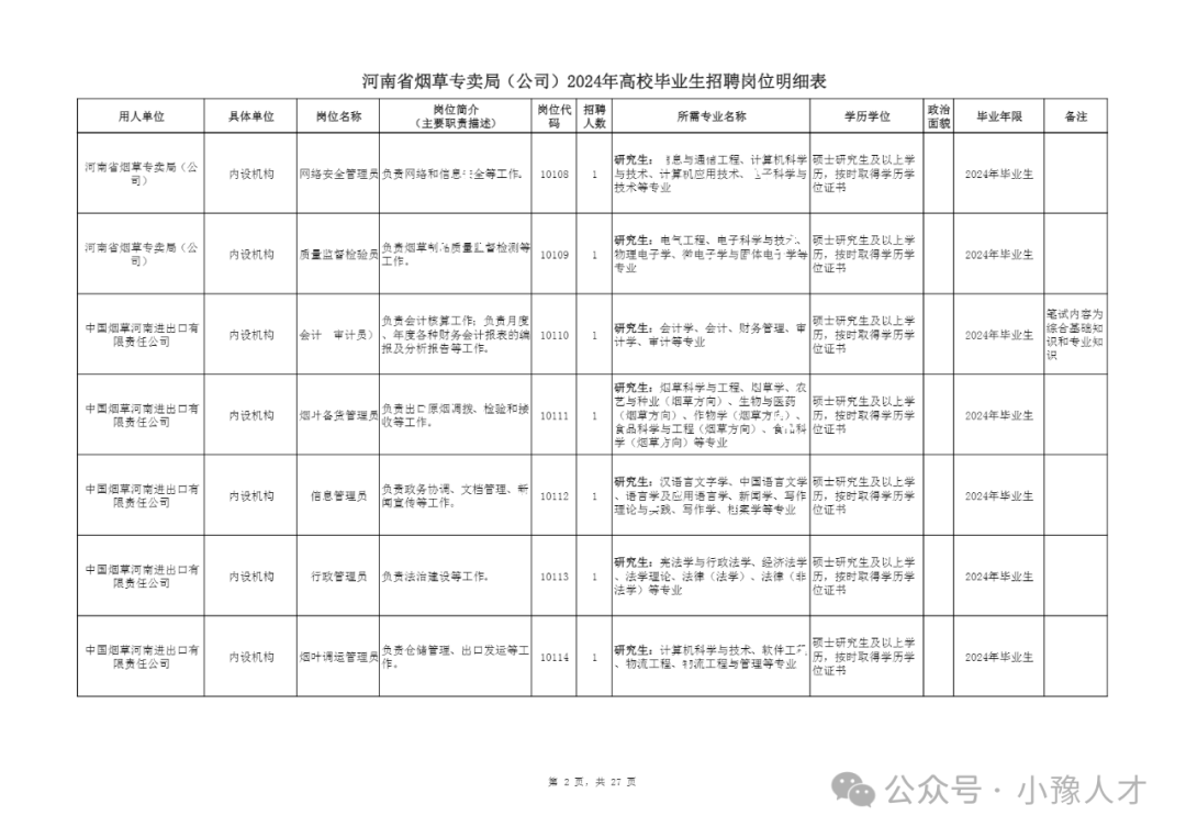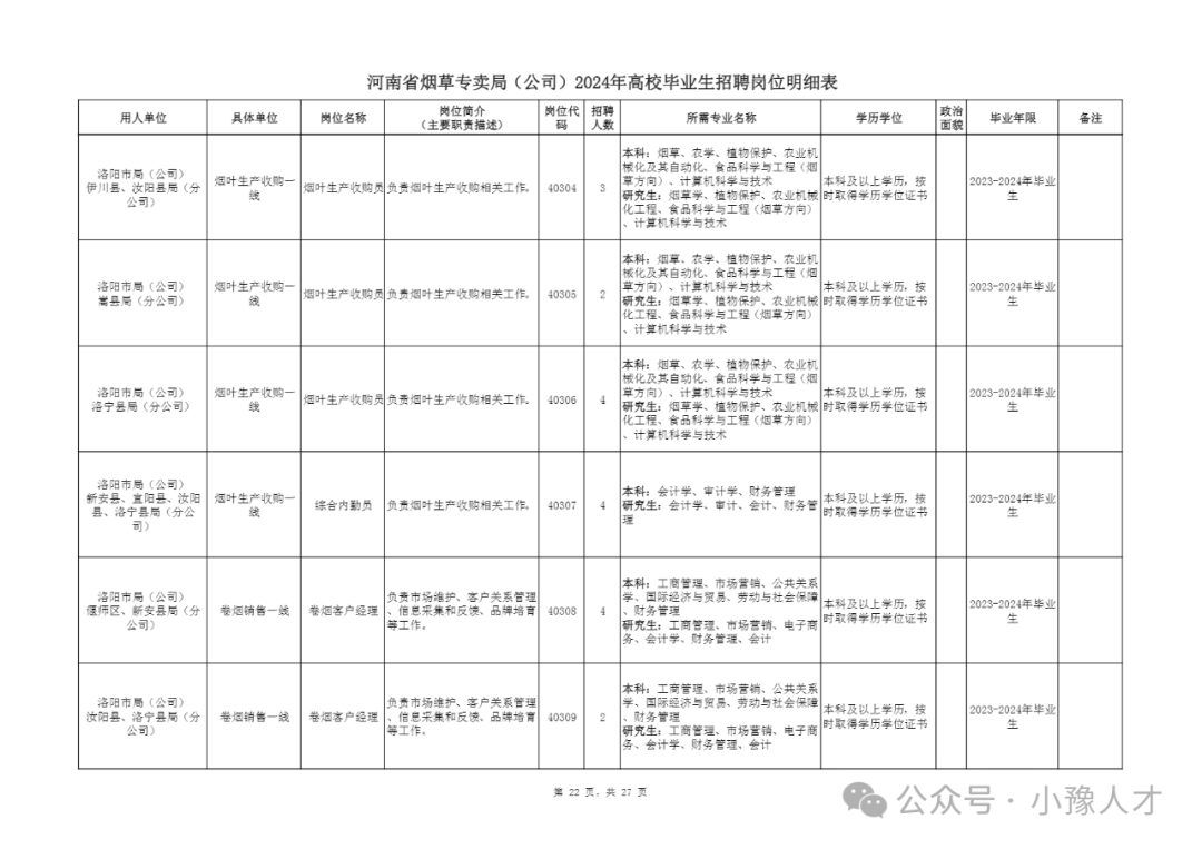 在中国烟草人才招聘平台(http://www.tobacco.gov.cn)和河南省烟草专卖局(公司)门户网站(https://ha.tobacco.gov.cn,以下简称省局(公司)门户网站)上发布。