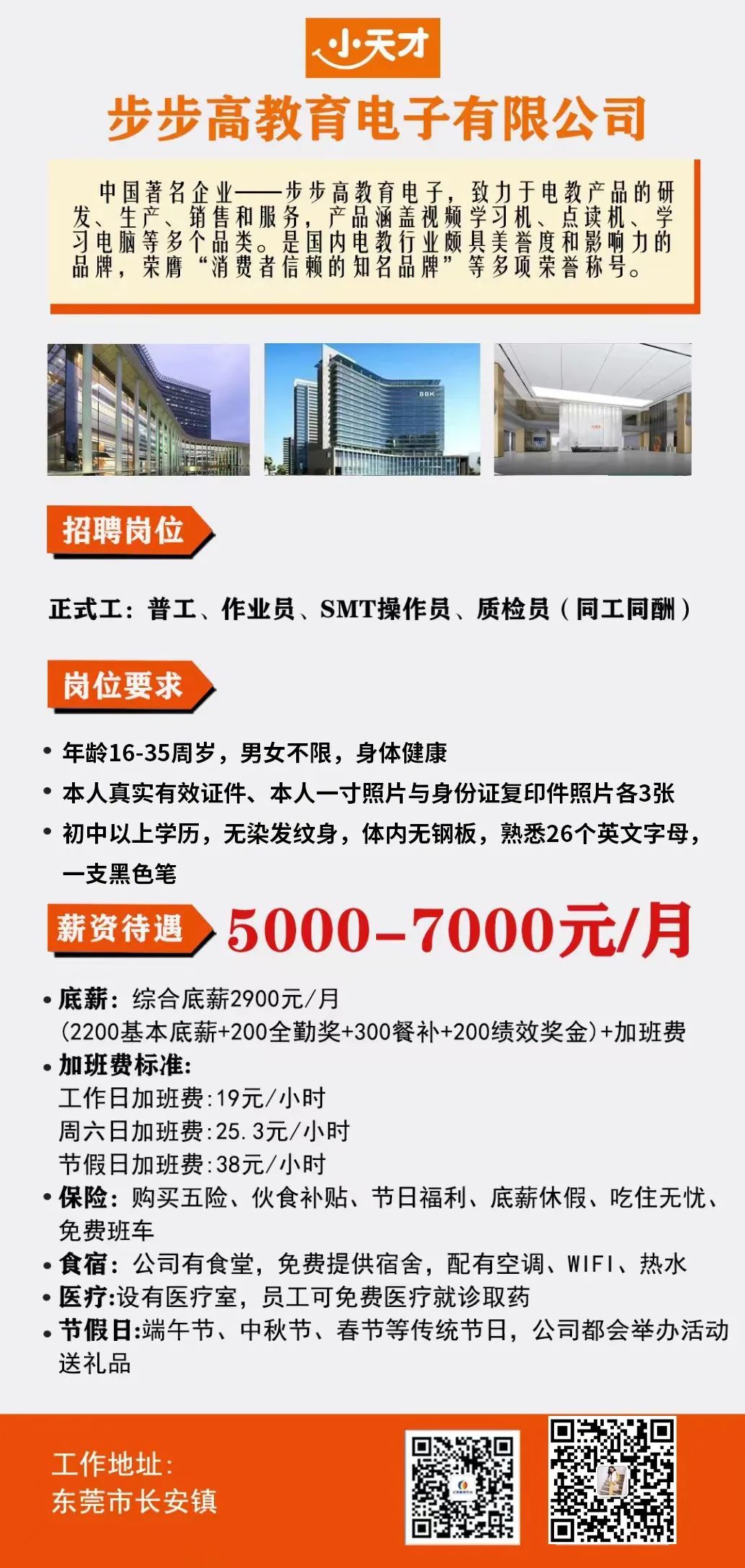 【招聘岗位】普工、作业员、SMT操作员、质检员(QC)、厨工、保安、保洁。