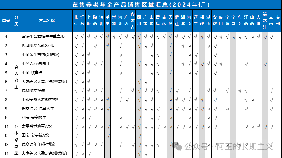 线下养老金产品,都会有区域限制,先根据所在省份筛选下,可供选择的产品,列表如下: