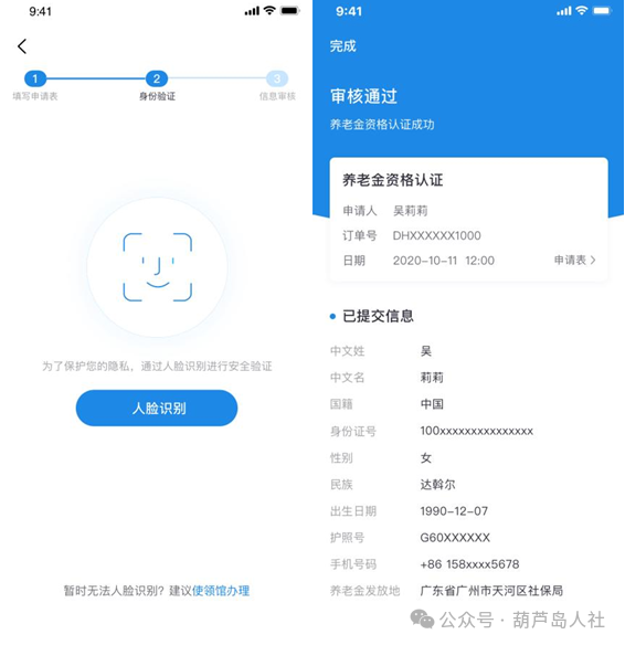 待遇领取人员可通过“辽宁人社”微信小程序、“辽事通”微信小程序、“掌上12333”APP、部“中国领事”APP进行人脸识别自助认证。也可就近前往葫芦岛市劳动和社会保障服务中心二楼退休人员服务中心资格认证科、各县(市)区社保经办机构退休认证服务窗口、街道(乡镇)、社区(村)党群服务中心办理资格认证。