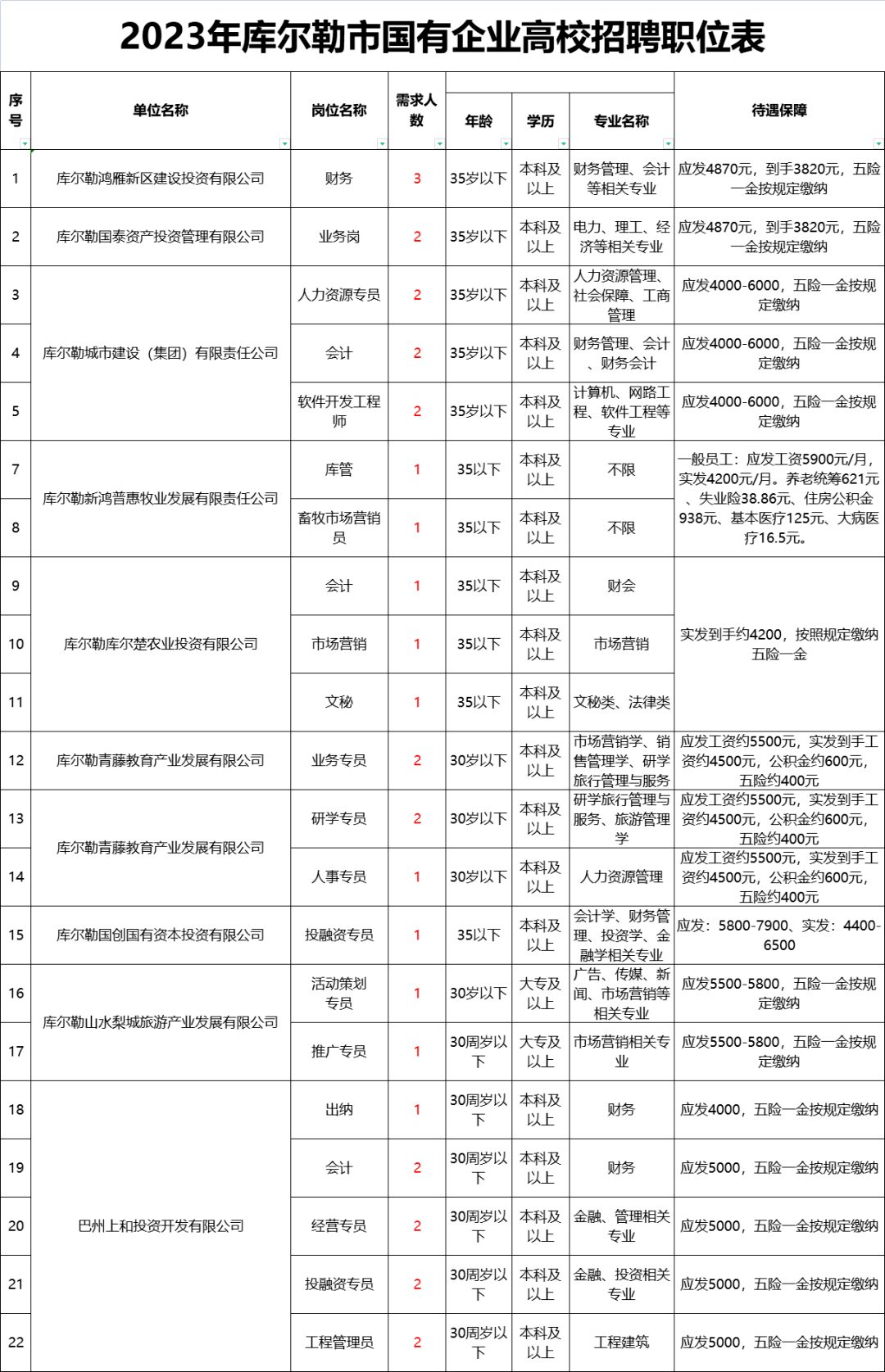 >库尔勒市国有企业高校招聘公告!速来投递!