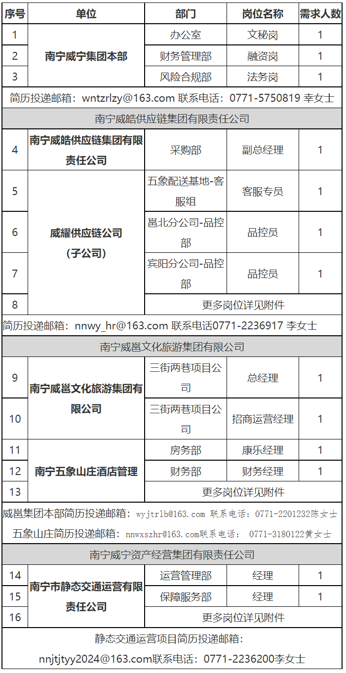 原标题:南宁威宁集团2024年第二季度招聘启事