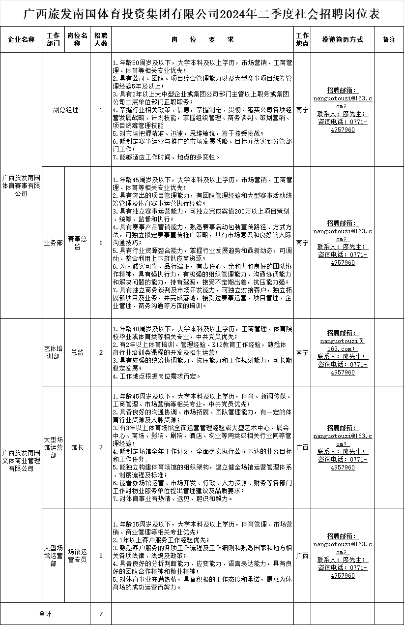 原标题:广西旅发南国体育投资集团有限公司招聘启事