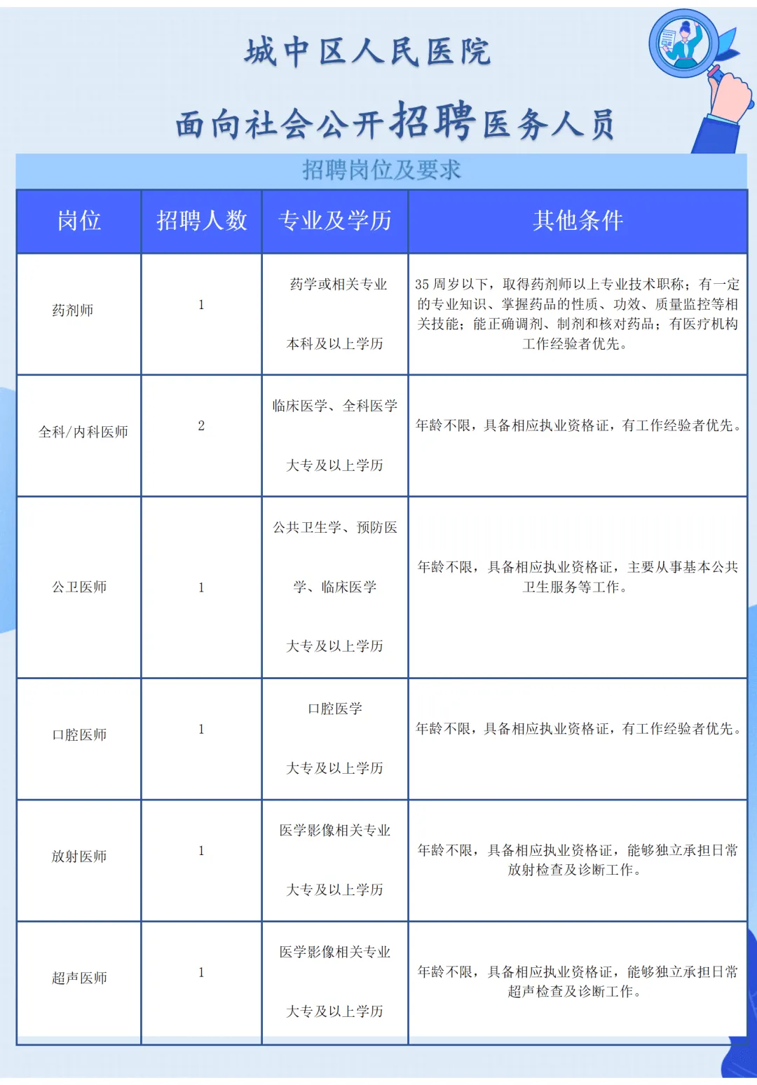 2024年城中区人民医院面向社会公开招聘医务人员公告