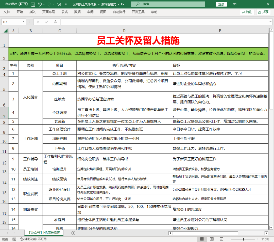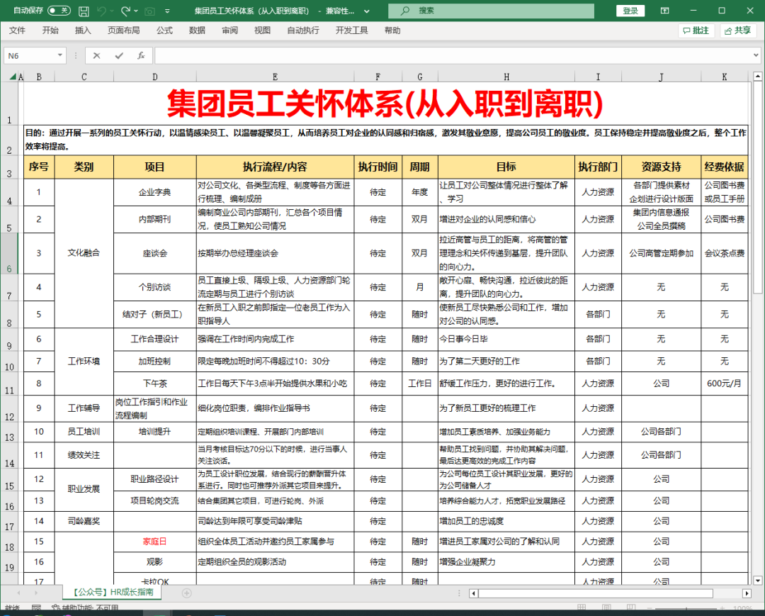 为此,我精选整理了《员工关怀方案》送给大家,从职业关怀,到福利关怀、家庭关怀、重大节日关怀,面面俱到,做到既留人又留心!下面,咱们一起来看看本期资料预览吧,文末有资料免费下载方式哦 ^_^ 员工关怀Excel