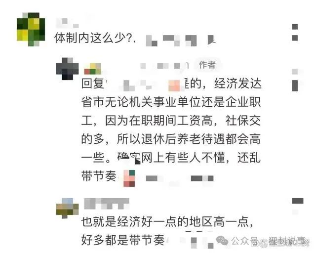 对于网友的疑惑和评论,作者进行了回复。确实在经济发达的省市,无论是机关事业单位还是企业职工,因为在职期间收入较高,社保缴纳额也较多,因此退休后的养老待遇会更高。