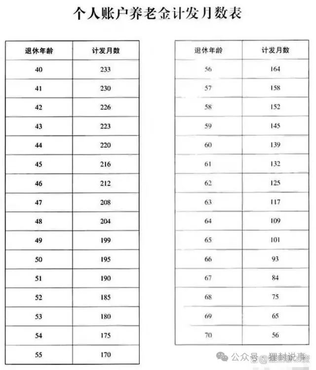 计发月数是由国家统一定的,不同年龄退休的人计发月数不同。例如,50岁退休的计发月数为195,55岁退休为170,60岁退休为139。