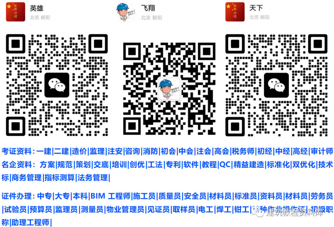 | 【点击查看】→办理公众号会员+考证资料会员(涵盖工程类所有考证资料、精品资料、名企资料、施组及方案库、视频教程库、方案模型库、技术交底库、技术标库) |