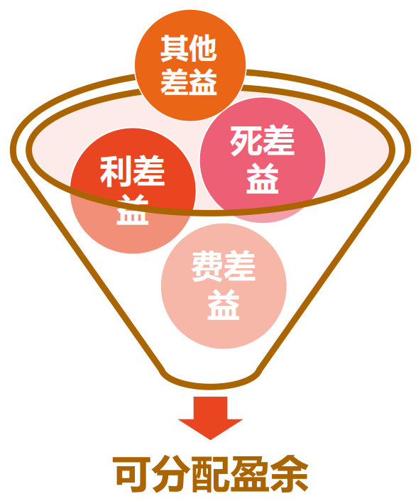 分红保险产品的红利主要来源于公司的「利差益」、「死差益」、「费差益」。