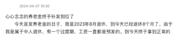 还有,这位网友还将收到之前几个月因计发基数低估而少发的养老金补发。