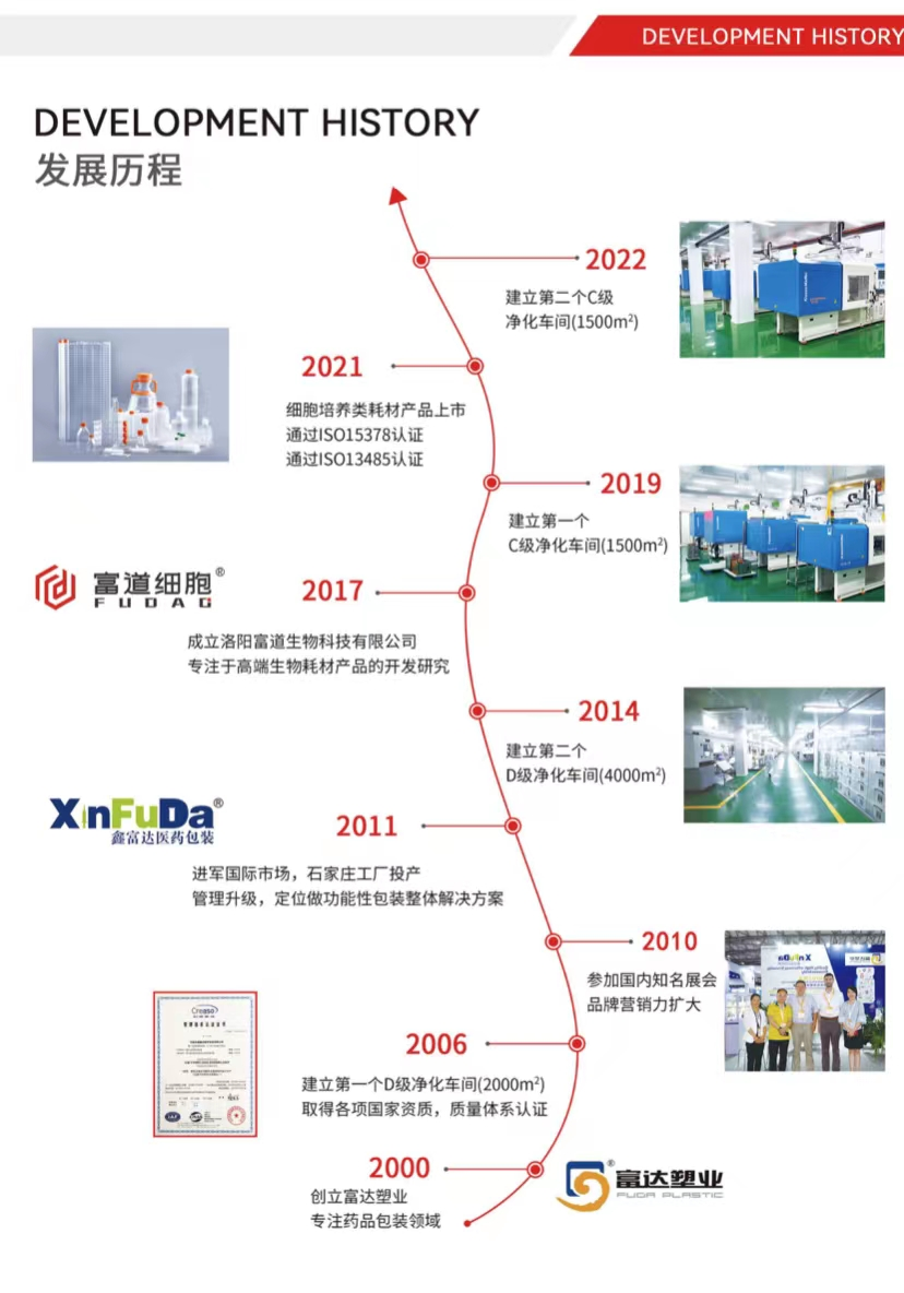 富道细胞耗材集工业化高端细胞培养耗材、实验室耗材、检测耗材和医疗器械的研发、生产、销售于一体,秉承着"专注高端生物耗材,助力全球生命科学发展"的企业使命,从立项研发之初就对标国际头部品牌,从车间级别、生产设备、模具设计、原材料选用、质量体系、售后服务等方面,全面保证产品质量与服务.为生命科学研究提供强有力的产品支撑。