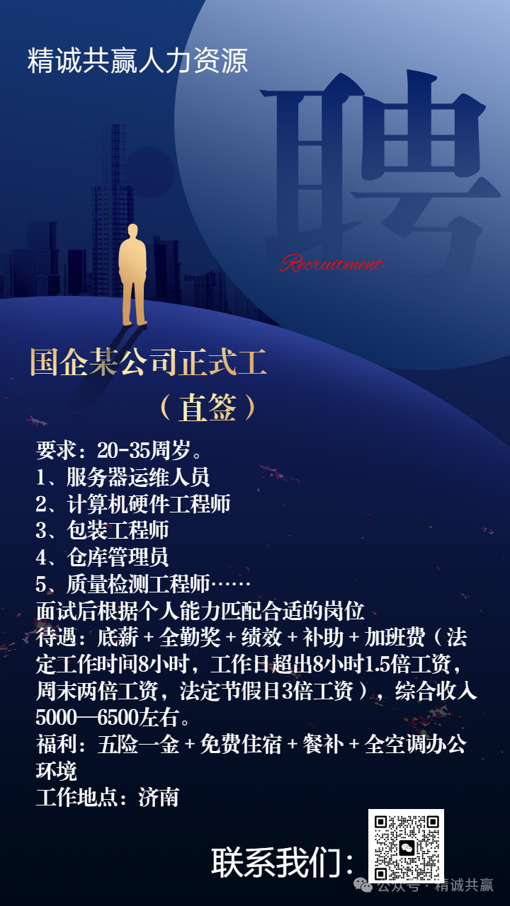 国企招聘 | 国企某公司 | 直签正式工 | 有意速联!!!!