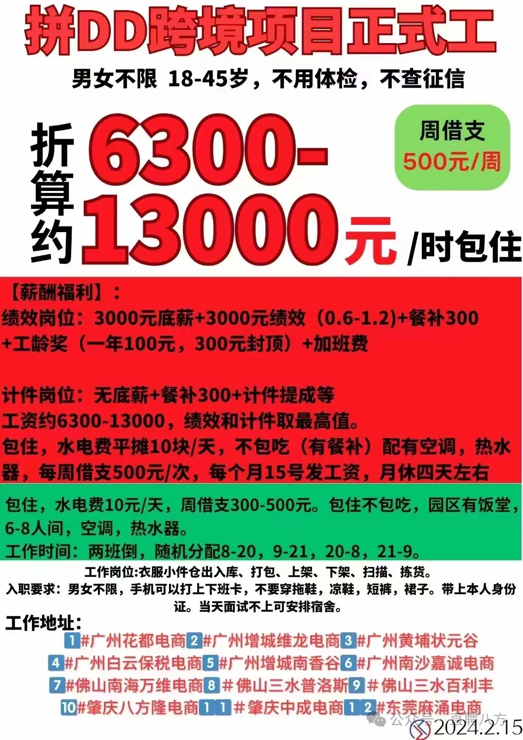 包住,水电费平摊,不包吃(有餐补300/月)配有空调,热水器,每周借支500元/次,每个月15号发工资,月休四天左右