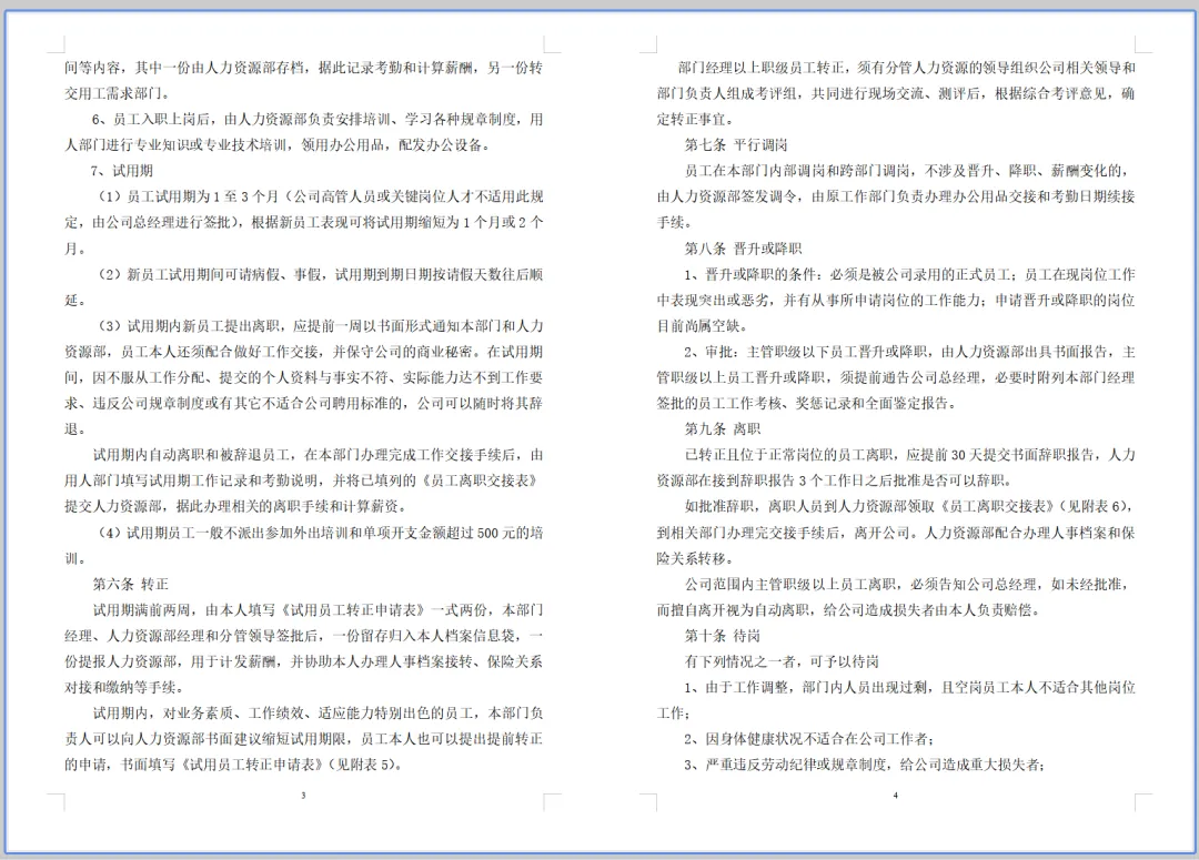 2. 员工需与人力资源部门确认并签署相关文件。