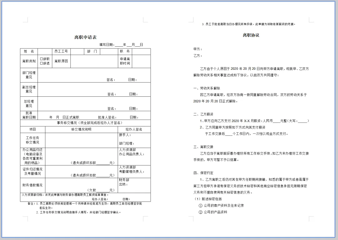 2. 在《离职申请表》中,员工需明确标注离职日期、原因及个人的未来职业规划。