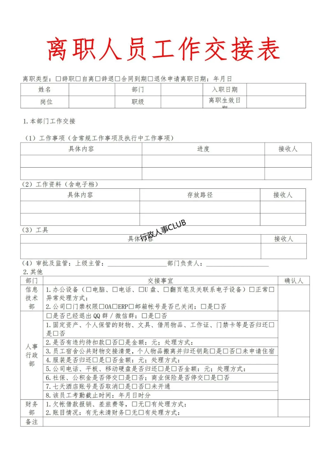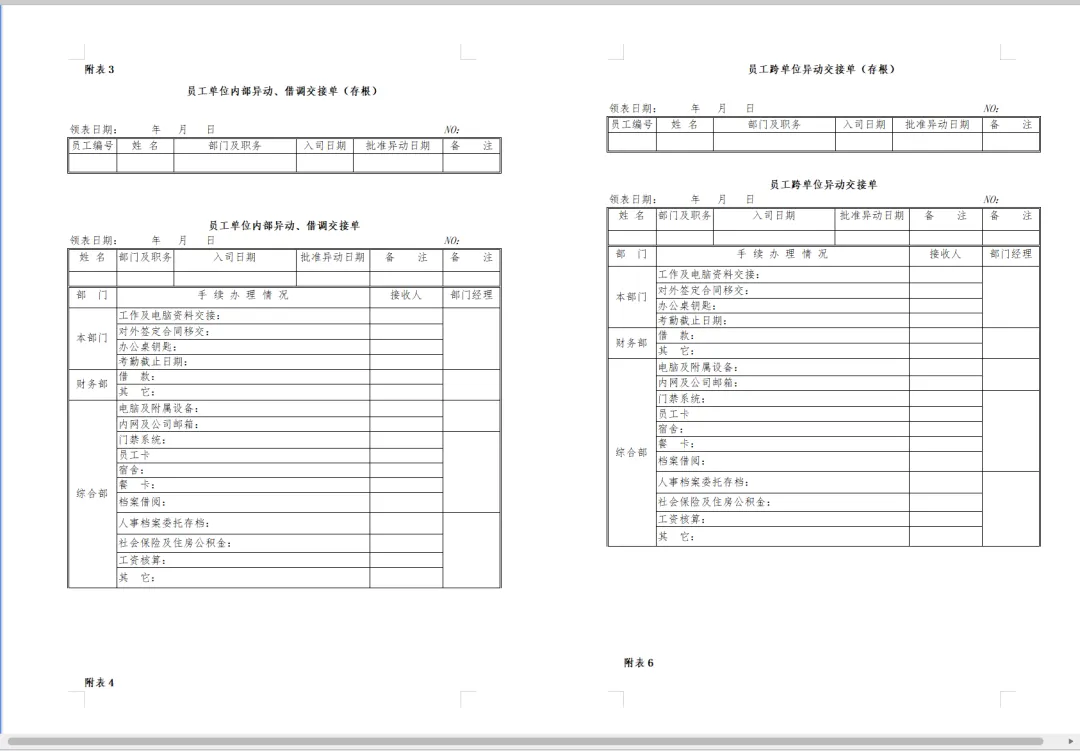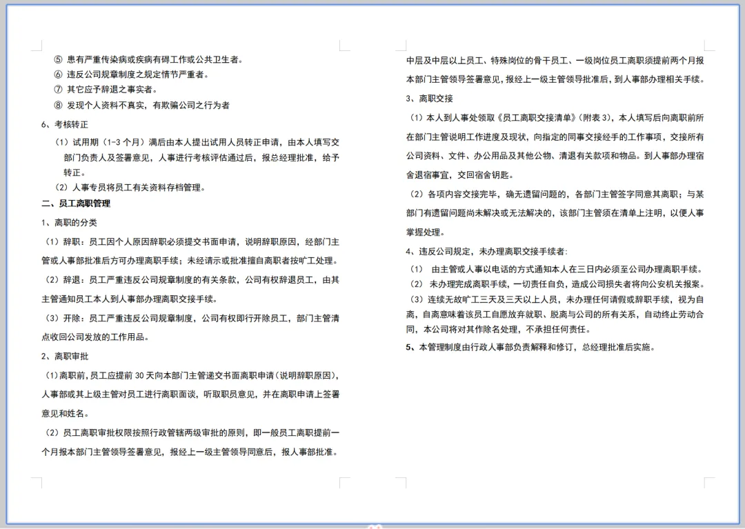 1. 员工需与直属上级和团队成员进行工作交接,确保工作的连续性和稳定性。
