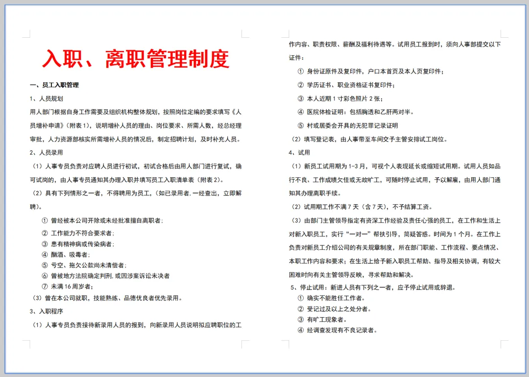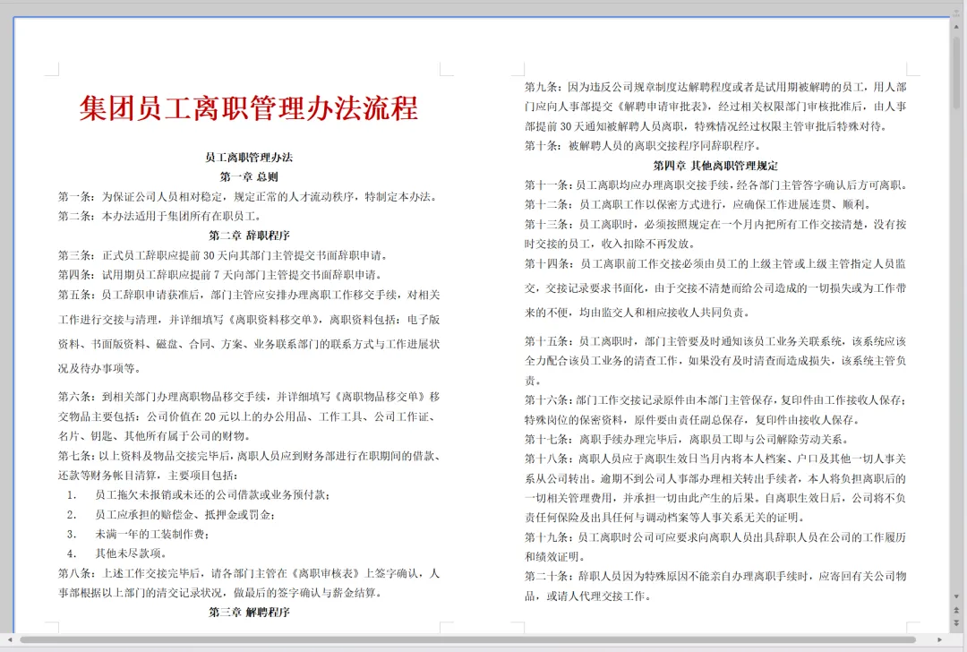 1. 员工需按照公司规定办理相关离职手续,包括但不限于:离职证明、离职申请表、离职证明信等。