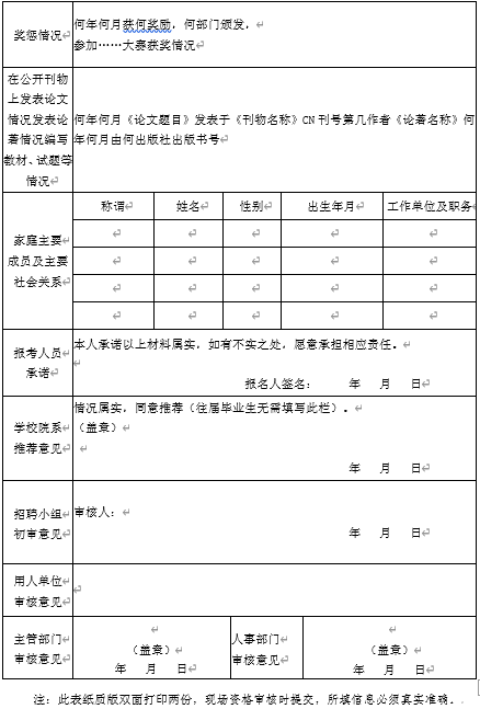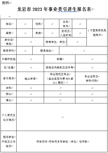 年事业类引进生报名表(见附件,需盖章、签名)。