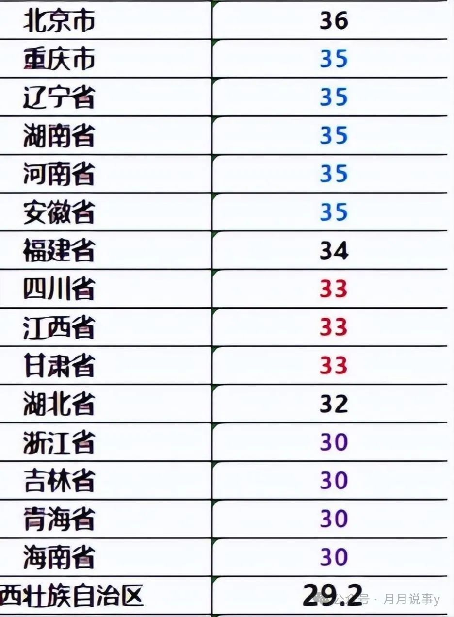 今年31个省份中,我们看到了养老金定额调整金额,出现频率最多的数字是35、33、30这三个!35元出现了5次、33元出现了三次、30元出现了4次,这说明30~35元大约能代表全国的金额上涨的一个平均数。都是哪些地方呢?具体如下。