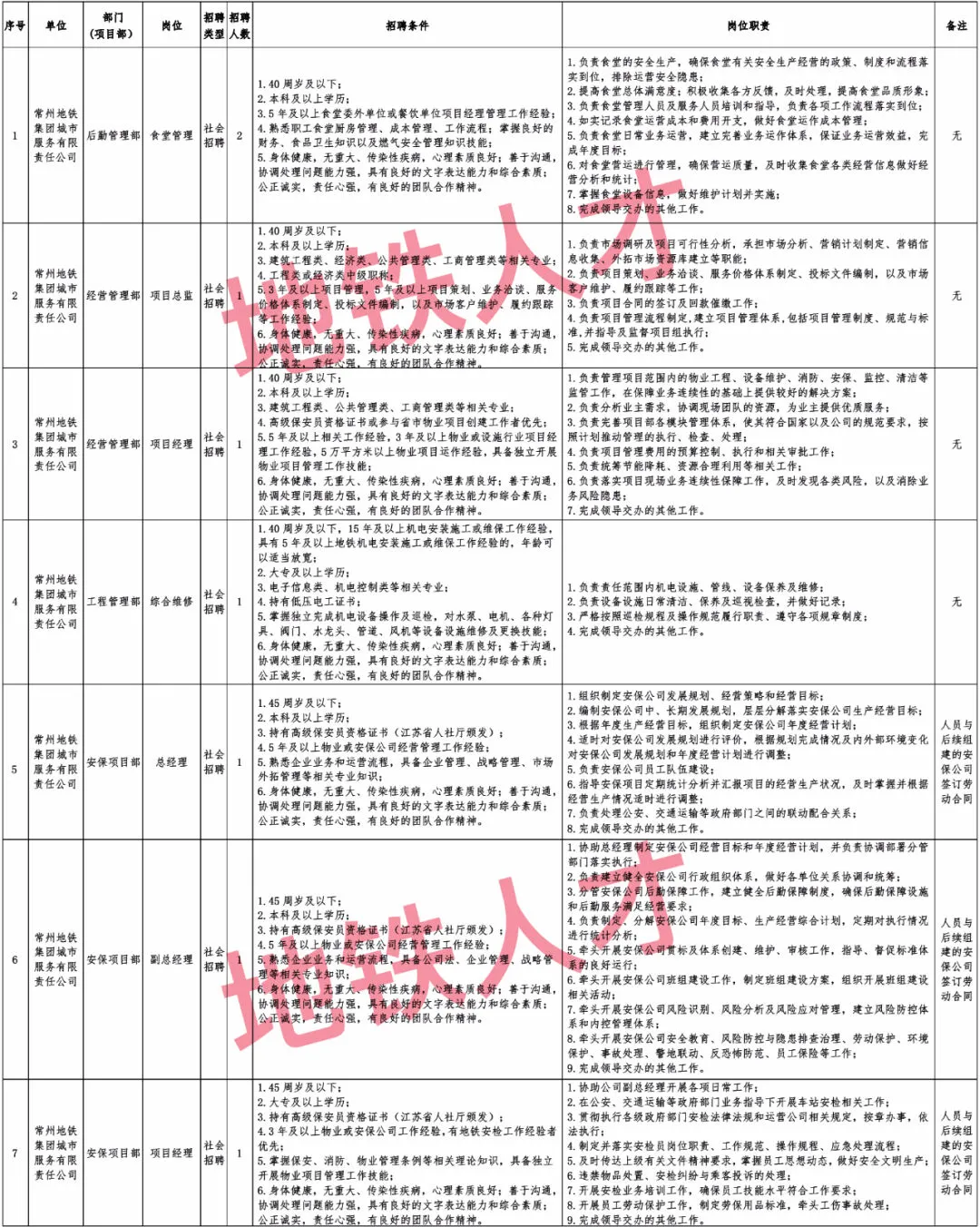 3、8人!常州地铁集团城市服务有限责任公司2024年招聘公告(4.26)