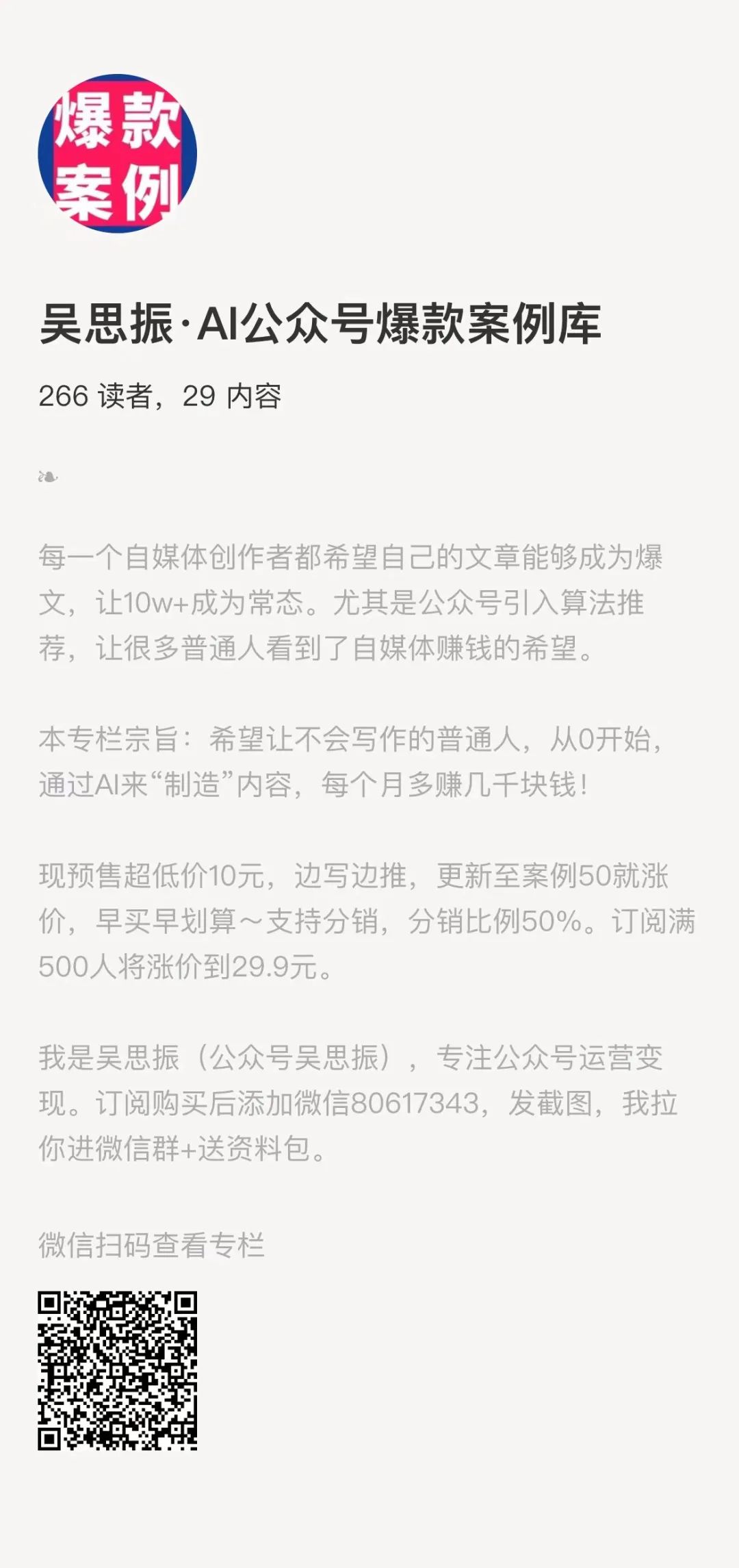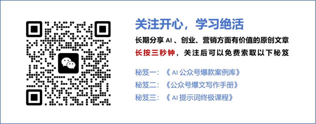 发送 “免费” 领取《AI公众号爆款案例库》和《ChatGPT爆文写作手册》