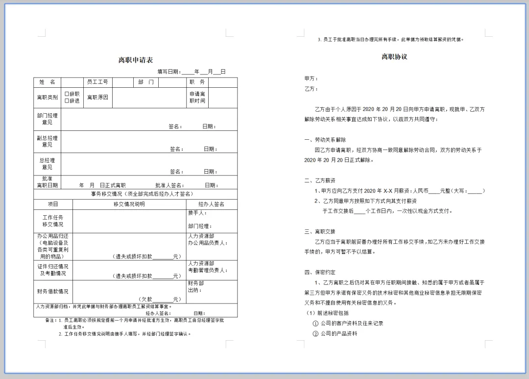 在离职协议中,需要明确员工离职前的工资、奖金、津贴、补贴等福利待遇的结算方式和时间。同时,还需对员工离职后的福利待遇进行说明,如是否享有年终奖、是否继续享受社保等。