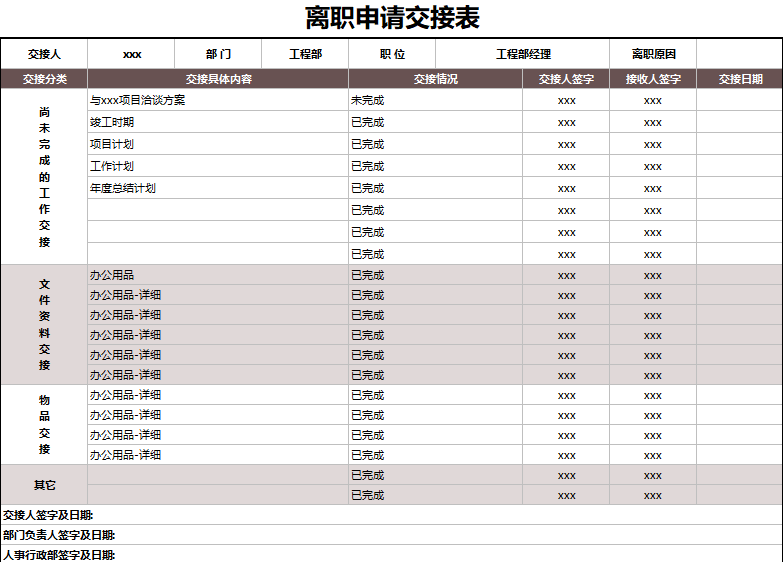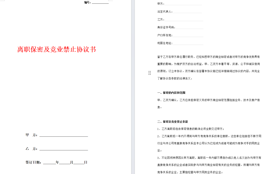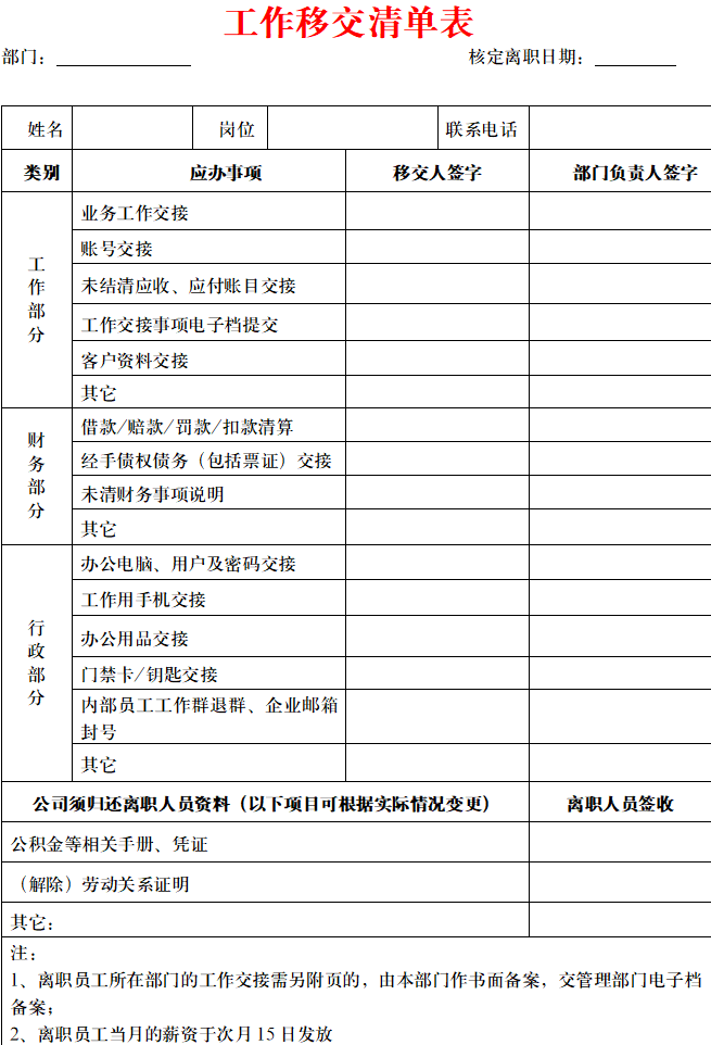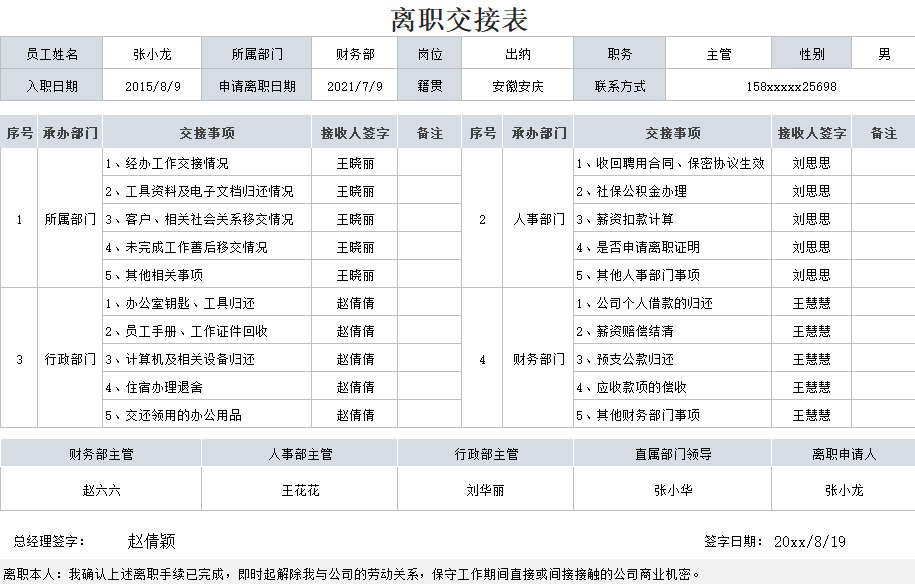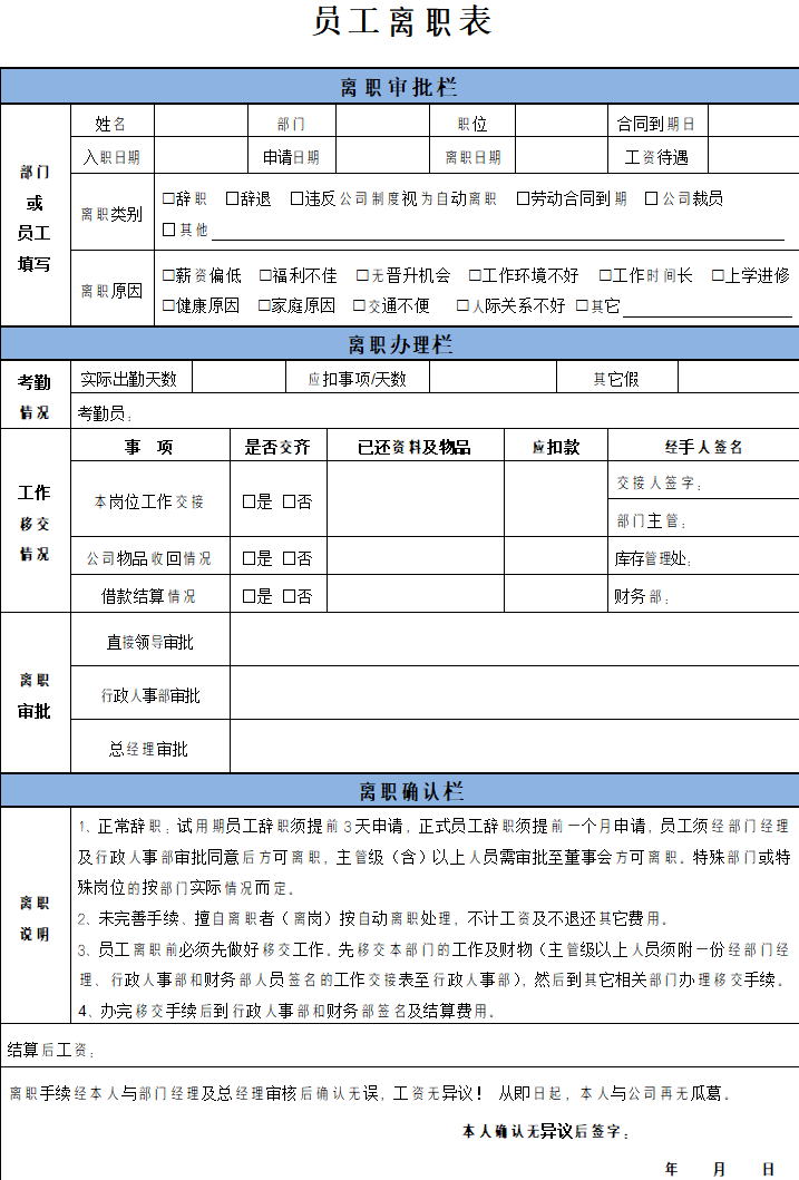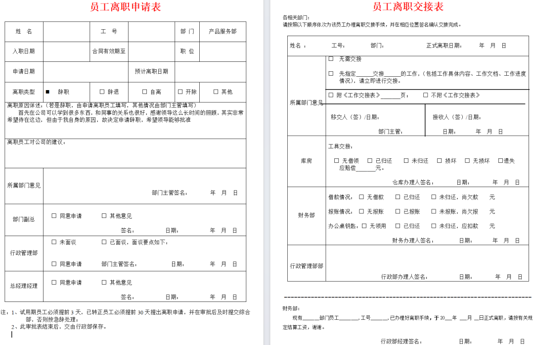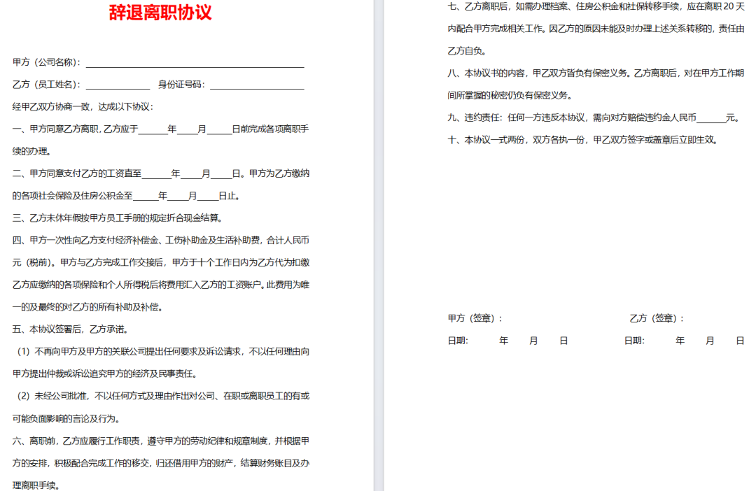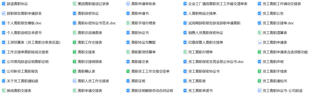 本套资料包含辞退离职协议、离职申请书、离职工作交接表、离职访谈调查表、离职交接表、员工离职表,预览如下:
