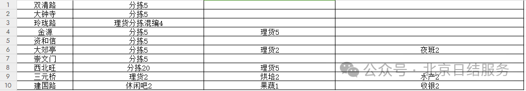 分拣:早6点30,到晚上7点30,早9晚10,大夜班晚上10点到早上8点