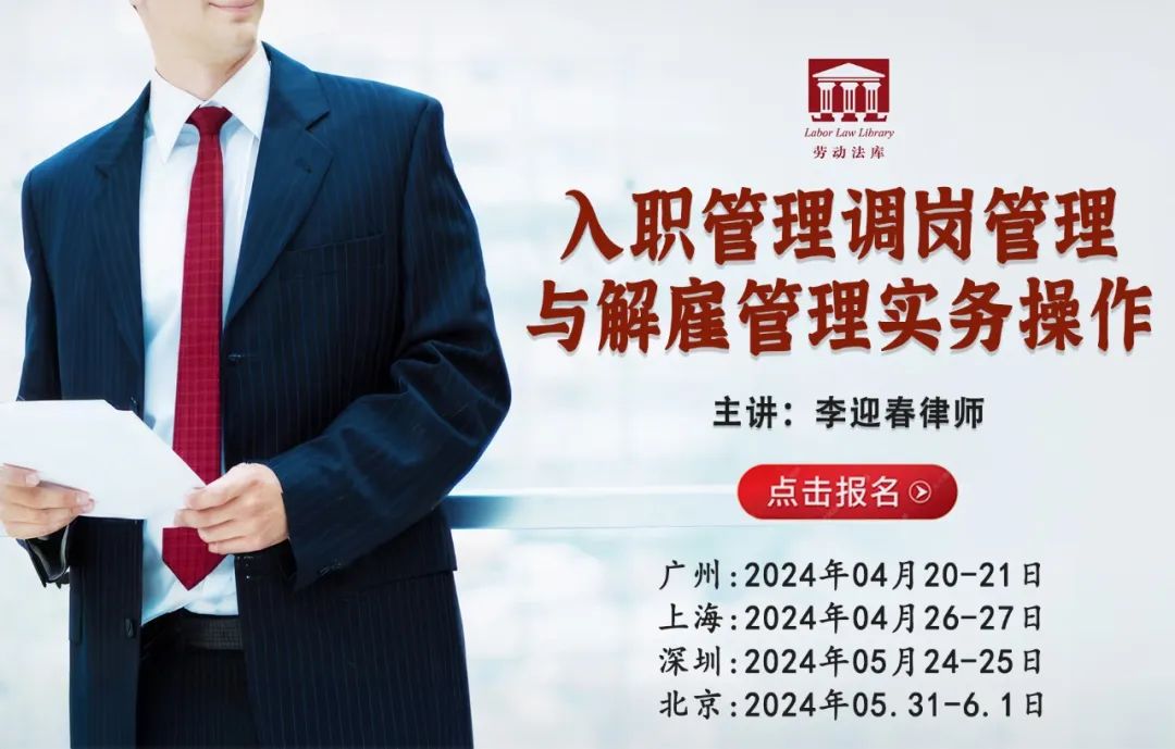 如何控制入职、调岗、解雇环节的法律风险?人力资源法律推出全干货实操课程,北京/上海/广州/深圳四地开讲,点击链接即可查阅详细内容及报名!三十万HR共同关注,解决HR遇到的法律问题,增长实务经验,只需长按二维码2.89秒即可识别关注!