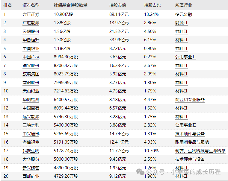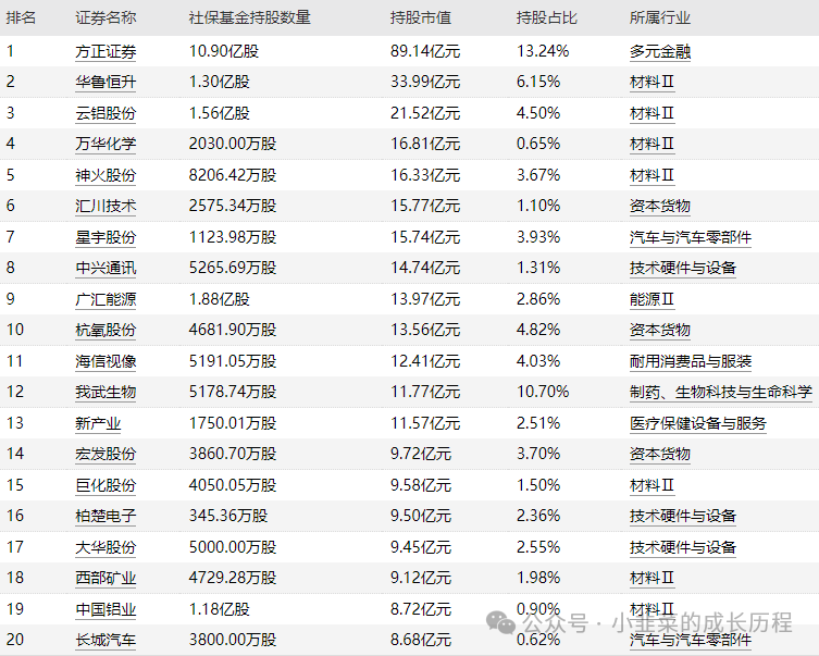 截至4月26日,社保基金一季度共现身343只个股前十大流通股东,合计持股58.99亿股,合计持股市值达952.56亿元。其中,135只个股持股数量超千万,方正证券、广汇能源、云铝股份持股数量居前,社保基金分别持有10.90亿股、1.88亿股、1.56亿股。从社保基金持股行业分布来看,主要集中在材料Ⅱ、资本货物、技术硬件与设备,分别有59只、55只、40只。