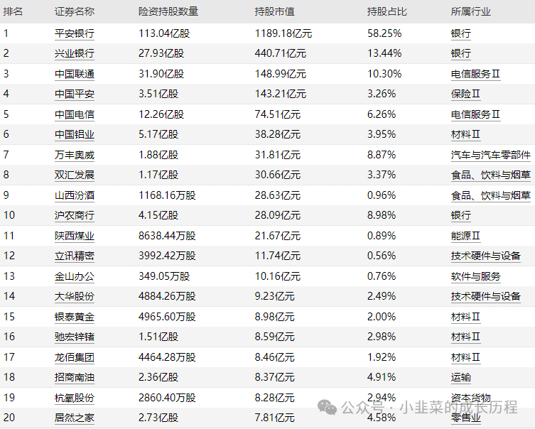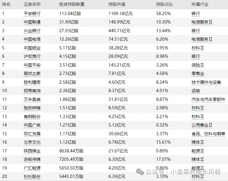 截至4月26日,险资一季度共现身311只个股前十大流通股东,合计持股245.36亿股,合计持股市值达2710.03亿元。其中,113只个股持股数量超千万,平安银行、中国联通、兴业银行持股数量居前,险资分别持有113.04亿股、31.90亿股、27.93亿股。从险资持股行业分布来看,主要集中在材料Ⅱ、资本货物、技术硬件与设备,分别有56只、56只、45只。
