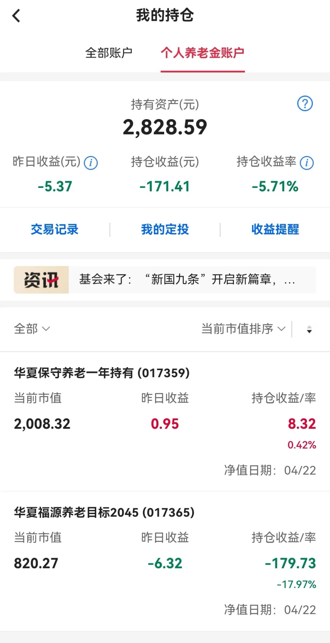 4月26日,距离将个人养老金放进理财账户即将届满一年。