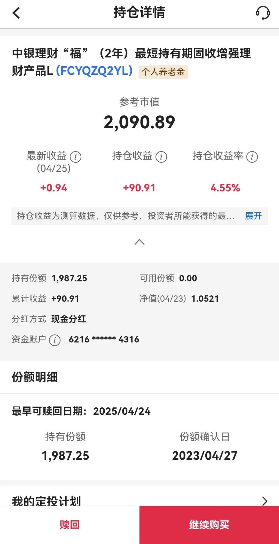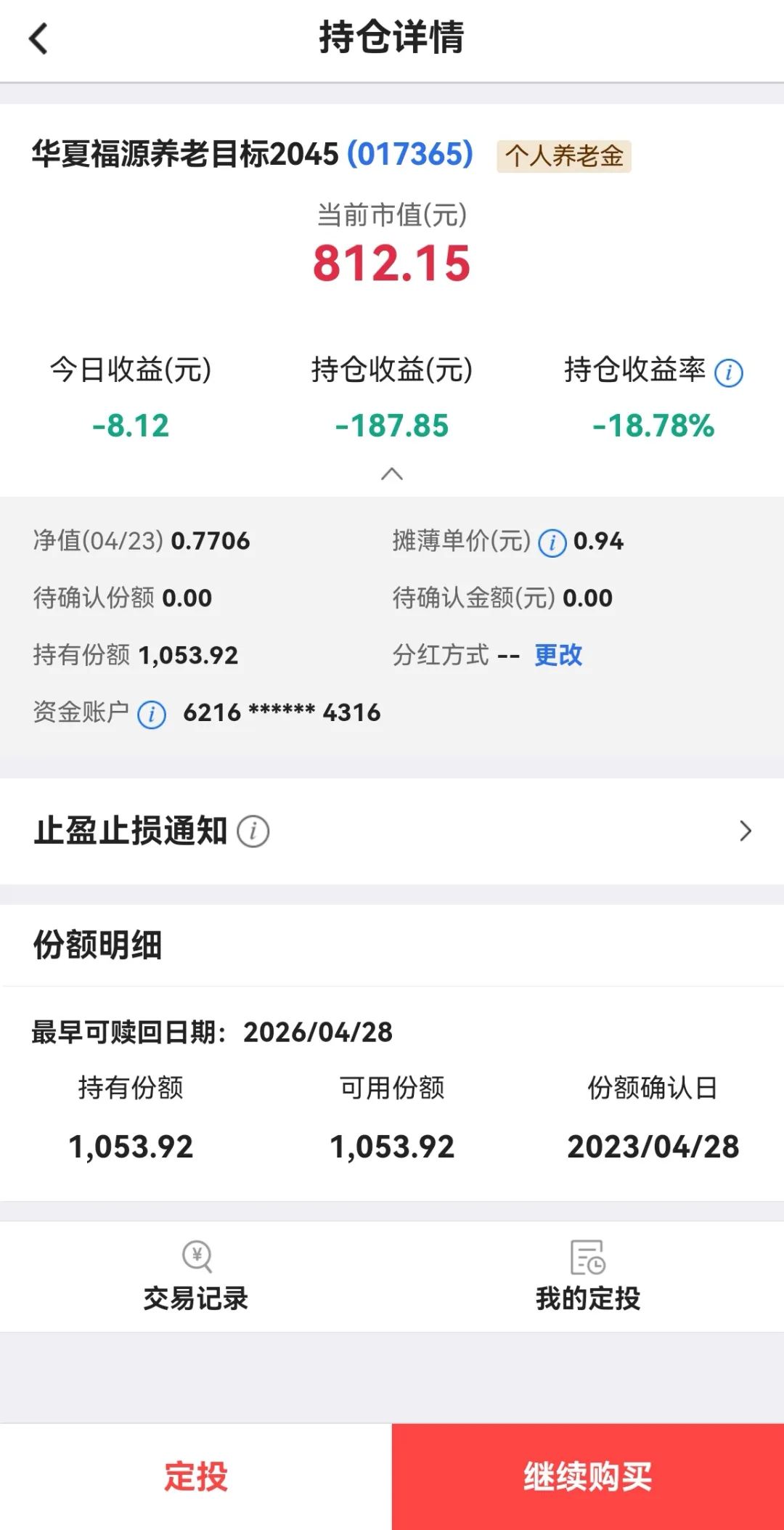 右图可以看到份额确认日期是2023-4-27。