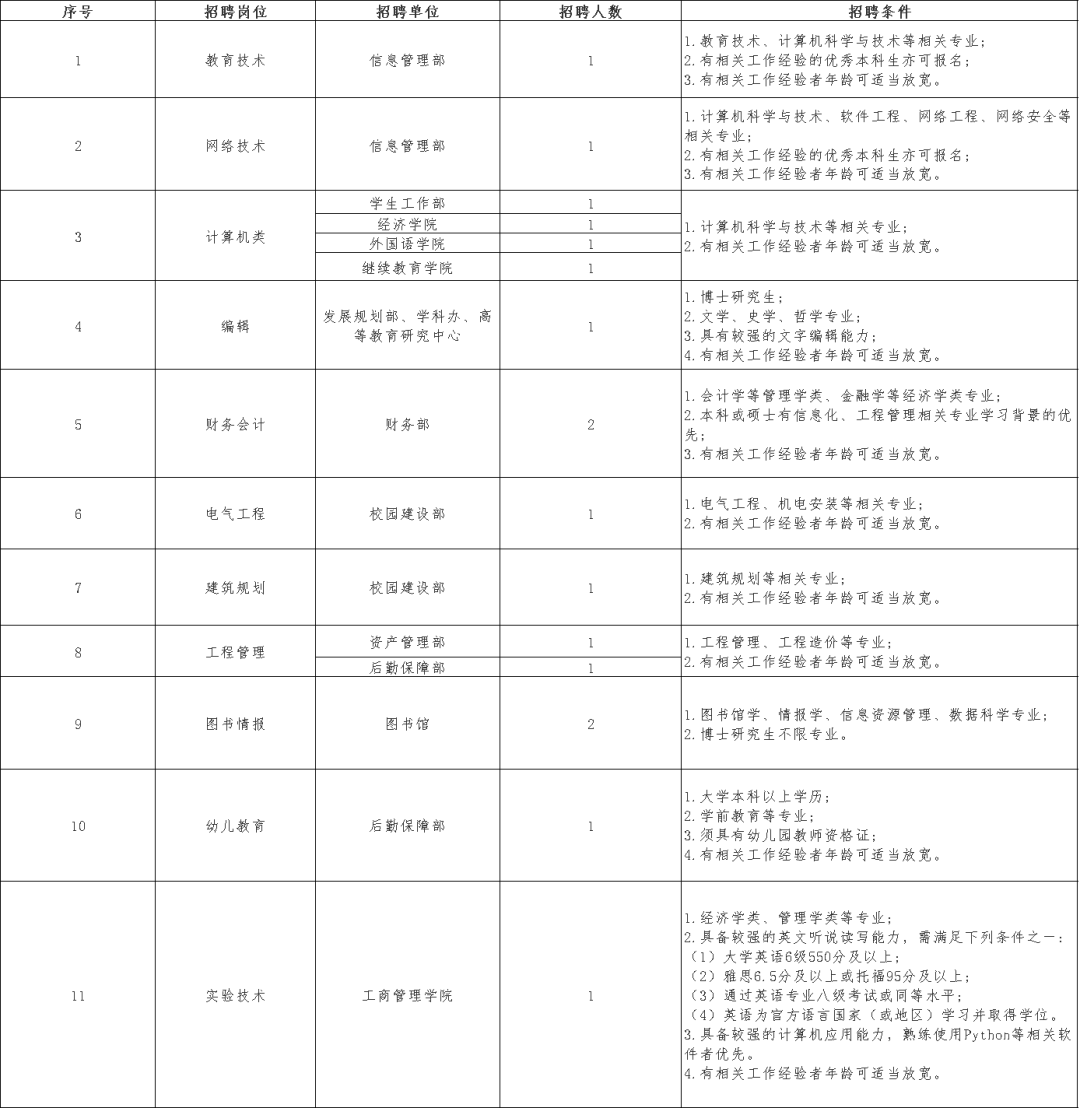 因工作需要,经学校研究决定,面向社会公开招聘17名非教师专业技术人员。现将有关事项公告如下: