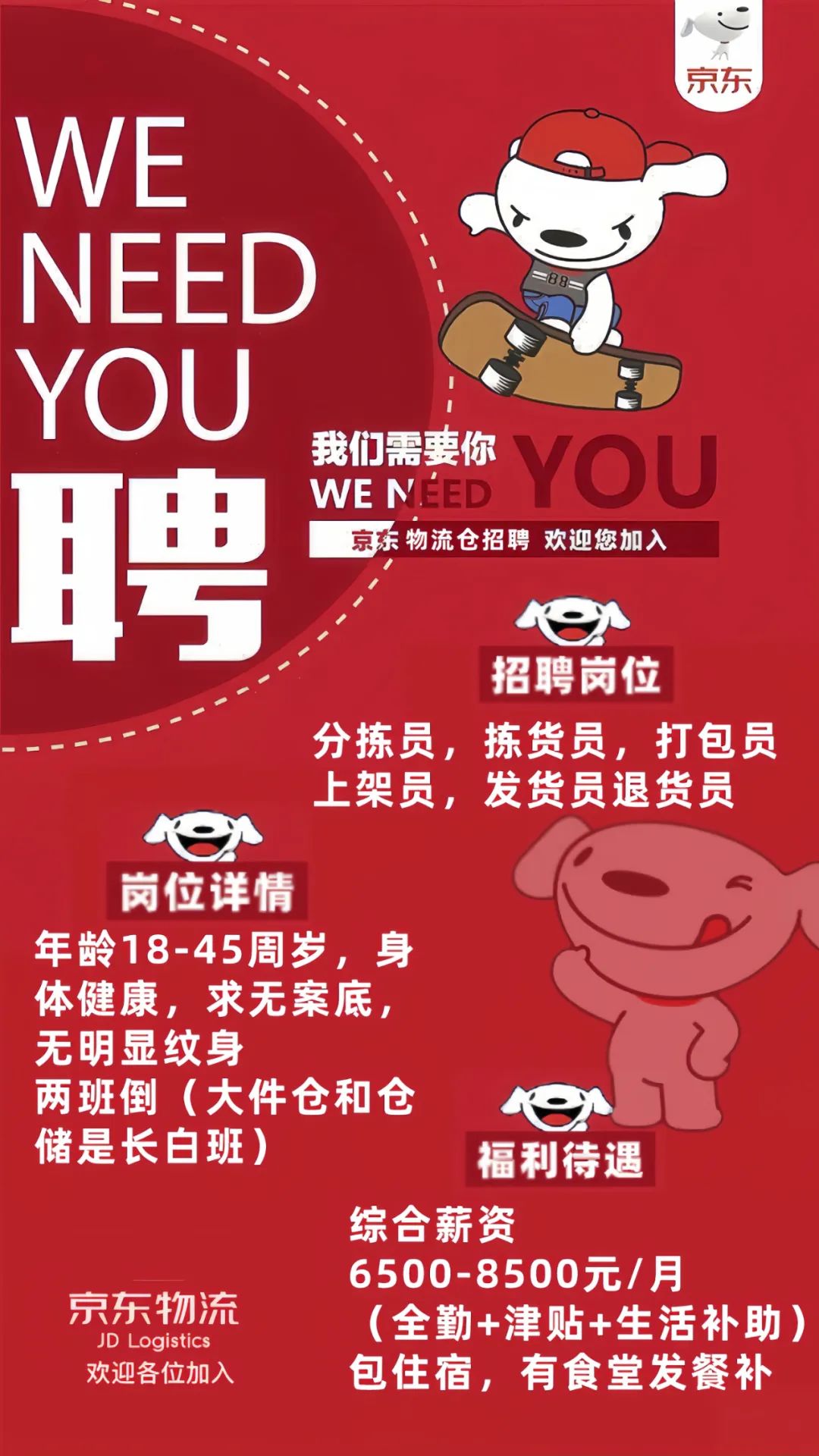 【京东物流】京东惠阳、揭阳仓招聘正式工,多岗位可选,6500-8500/月!