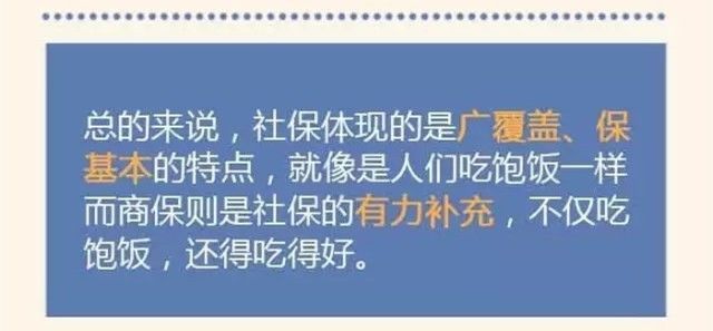 前总理朱镕基曾说过:“基本医疗保障只能是低水平的,‘保’而不‘包’,‘保’即有一个基本的保障,超出部分主要应通过商业保险解决。”社保是国家给公民的福利,但社保肯定是不足的,特别是医疗和养老两部分,还需要通过商业保险来进行补充。