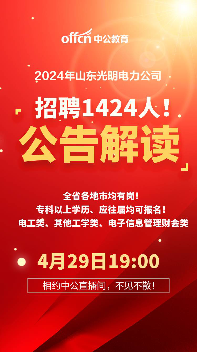 2024年山东光明电力1424人公告发布! 专科起报,应往届可报,各地市有岗! 报名时间:4月29日-5月13日17:00! 4月29日今晚19:00 一起来解读