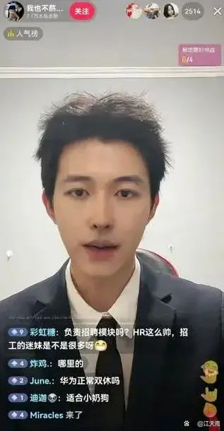 然而就在不久前,这个曾经备受追捧的"高帅富"男孩已经从华为离职,辞职的原因是"职业规划和公司政策不符"。离职后,他便立即开启了直播模式,在社交平台上架起了自己的橱窗,转而踏上了一条"网红经济"的赚钱之路。