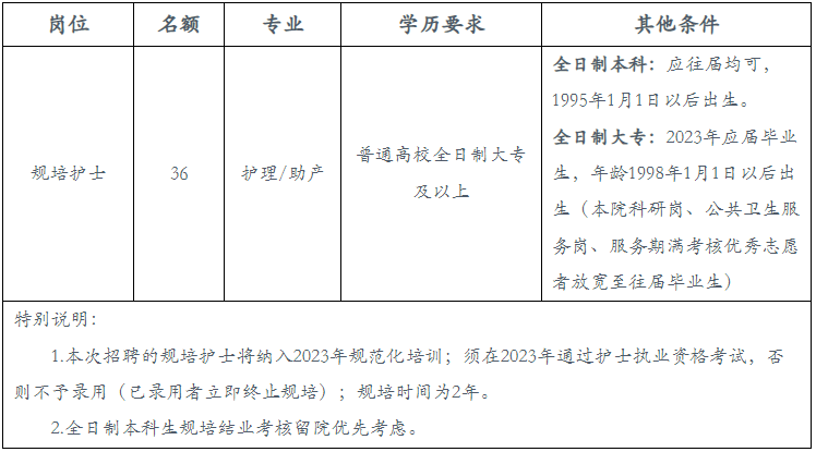 因工作需要,我院拟招聘规培护士36名,现将有关事项公告如下: