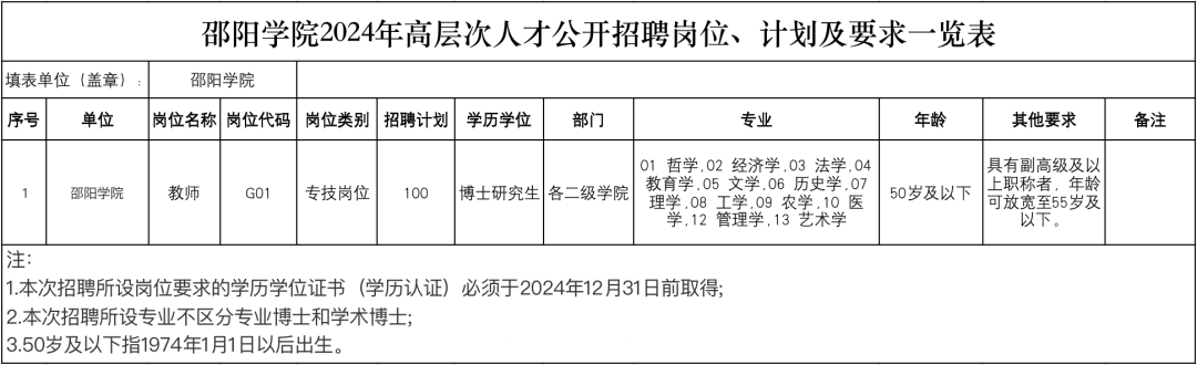 邵阳学院报名时间:2024年5月9日0:00至2024年12月31日24:00。随到随招,招满即止。报名方式:采取邮箱报名的方式,每人限报一个岗位,多报则取消应聘资格。请应聘人员将资料直接发送到syxygccrczp@163.com邮箱(报名材料命名为“姓名+所学专业+学位学历/职称层次+岗位代码+联系电话”)。 长按二维码查看招聘信息