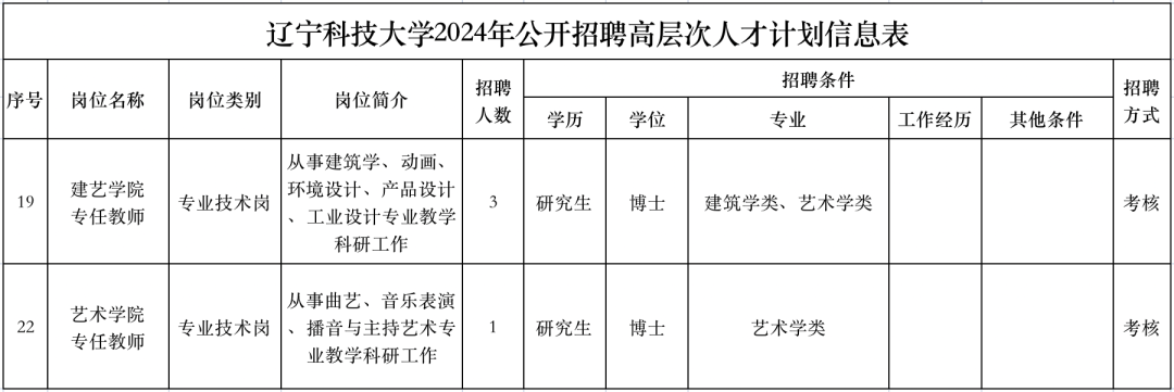 04 辽宁 辽宁科技大学报名时间:2024年5月6日至2024年12月31日。 报名方式:网上报名。每名考生只能报考一个岗位,符合我单位招聘条件的应聘者请将个人简历发送至电子邮箱(v_rc@163.com)进行报名,注明应聘的岗位,简历以“姓名-所学专业-毕业院校-报名岗位”格式命名;或登录辽宁科技大学官方网站(www.ustl.edu.cn)“人才招聘”栏目进入公开招聘报名系统进行报名。学校根据岗位报名情况随时组织考核,岗位招聘计划招满为止。  长按二维码查看招聘信息