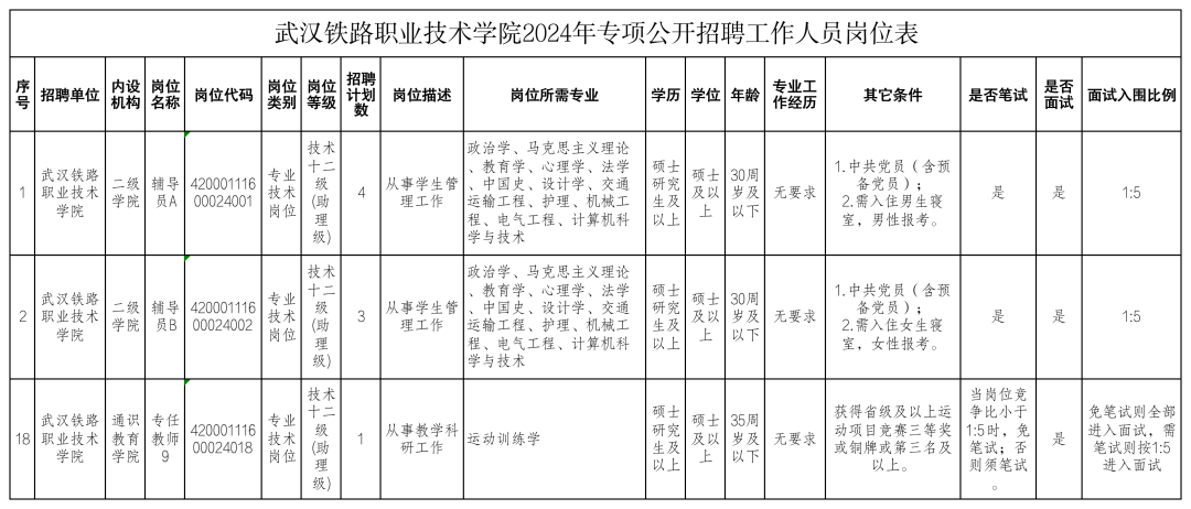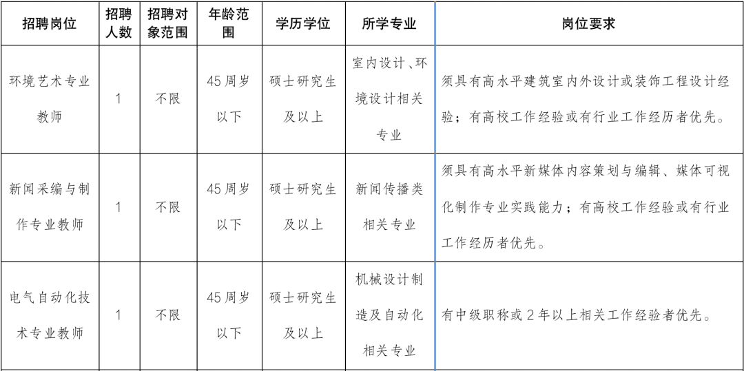 | 为了帮助2023届、2024届本科、硕士、博士毕业小伙伴就业,特将近期艺术类招聘信息做一汇总,供各位小伙伴查阅,预祝大家就业顺利! 另外,全国艺术类就业交流群微信群已经建立,需要加群的小伙伴搜索微信号Yishujiuye01邀请进群。 武汉铁路职业技术学院报名时间:自公告发布之日起至2024年5月8日17:00止。 报名方式:统一采用网上报名方式。应聘人员登录武汉铁路职业技术学院人才招聘网(http://hr.wru.edu.cn:3207),注册账户,按照系统提示填写简历并上传相应证明材料附件后提交报名信息,联系电话:027-51159339。  长按二维码查看招聘信息