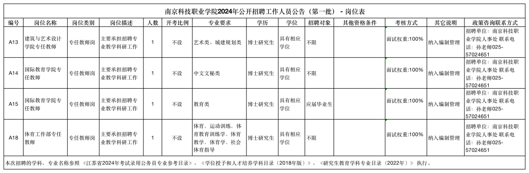 02 江苏 南京科技职业学院报名时间:5月6日9∶00-12月18日16∶00 报名方式:应聘人员通过“江苏省属事业单位公开招聘平台”报名,照片上传、资格初审均通过网络同步进行。报名网址:https://rs.jshrss.jiangsu.gov.cn/index/f/RCRS_0056(江苏省人力资源和社会保障厅网上办事服务大厅)  长按二维码查看招聘信息