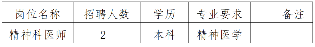 根据医院发展需要,面向济宁医学院精神医学专业招聘优秀毕业生,现将有关事项公告如下: