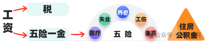 什么是养老金? 大家先回忆回忆~ 咱们打工人每个月辛辛苦苦挣几个钱, 钱进兜之前,还有个什么步骤? 对了~ 就是先扣除【五险一金】和【个人所得税】。 五险一金呢,指的是:【住房公积金、社保】。 社保,再细分,包含5中社会保险,分别是:【医疗、失业、养老、工伤、生育】。 这个养老保险,就是传说中的【养老金】!