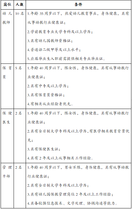 (2)身体健康,热爱幼儿园工作对工作,责任心强、服务意识强;