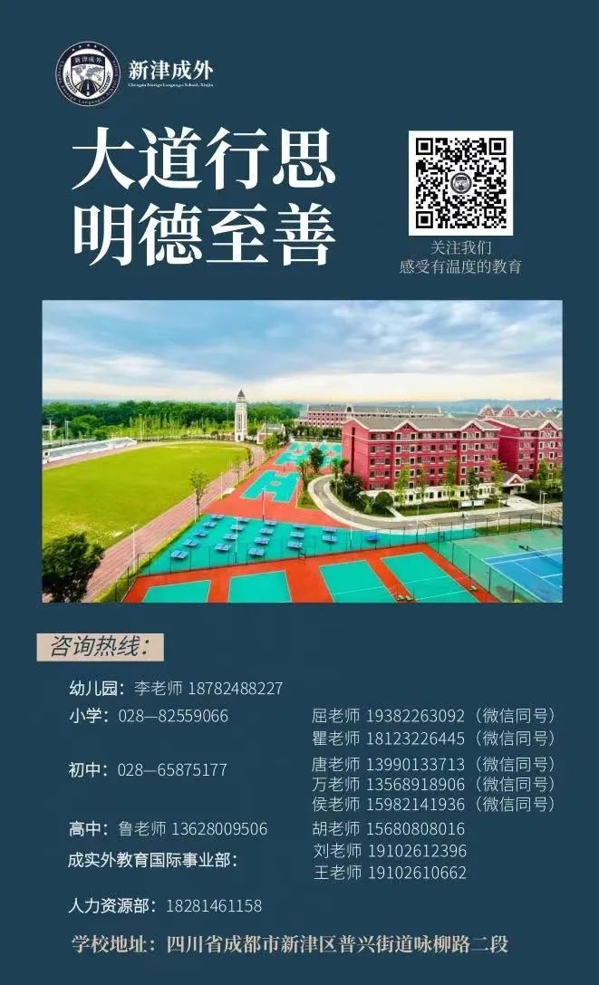 成都市新津区成外学校,坐落在岷江创新城核心片区,属于国家级天府新区范围,投资超大,占地248亩,现有小学、初中、高中三个学部,是成实外教育集团旗下一所创新型的高端精品K12学校,目前是西南地区硬件设施超一流的高端寄宿制学校。