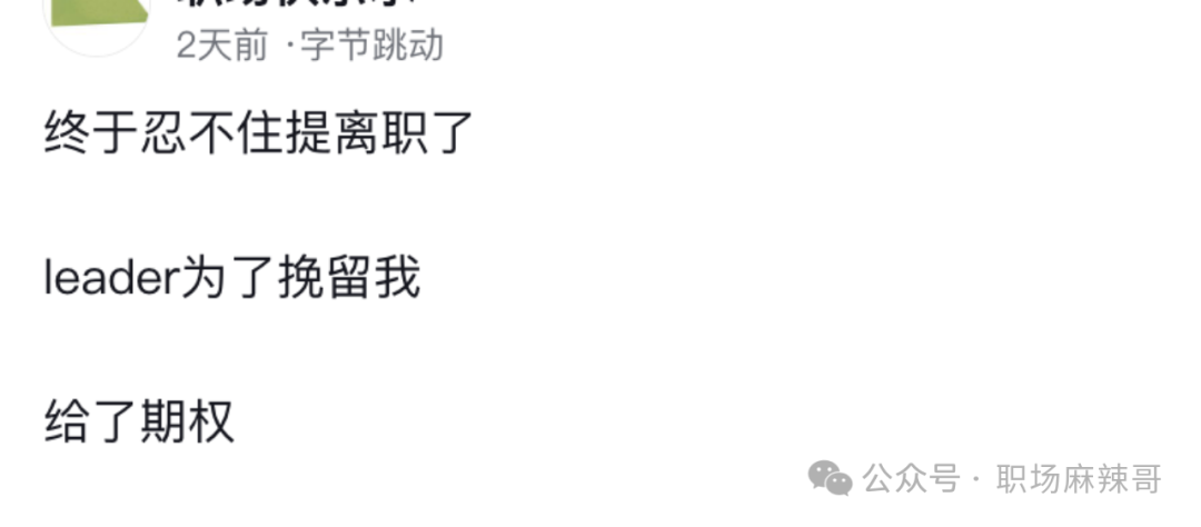 Leader给你的期权,看似是一份挽留的诚意,但也可能是一个让你再次陷入两难的圈套。 在这个关键时刻,你需要冷静地分析形势,做出最符合自己长远利益的决策。 因为,等你厚脸苟着,就轮到你老板教你做人了。 一方面,期权就等同于给他骗你第二次的机会。期权这种饼都吃,要么是真的饿,要么是下家不行,要么就是太单纯。期权都是骗人的,股权才是真的。 “教老板做人”听起来很痛快,但别忘了,职场如棋局,每一步都需要深思熟虑。如果你选择留下来,不是为了追求更好的发展,而只是为了一时的安稳,那么你可能正步入一个更大的陷阱。 提离职唯一可接的挽留就是现金+涨薪,或者说,如果是真的挽留,直接给限售股还是能接受的。 而对于领导来说,一方面,他只是为了留出时间找下一个,你走也是早晚的事。挽留你,是暂时还没人能替代你,等找到后……你立刻滚蛋;另一方面,大公司 leader 也是打一份工的,他有什么权利给你期权? 如果没有任何经济压力,随便开心就好。如果有家庭负担,最好找好下家再走,现在经济形势真的不是很好。 目前这个大环境,如果不是实在无法忍受或有家庭负担,还是可以先苟住,但要求适当涨薪。等以后裁的时候再拿出一波大礼包。 如果选择离开,你也要清楚自己将面临什么。在当前的经济形势下,跳槽并非易事,尤其是对于有家庭负担的人来说,每一步都需要谨慎。 在没有找到更好的出路之前,盲目的离职可能会让你陷入更大的困境。 因此,如果你决定留下,那么就要为自己的留下争取到最大的利益,比如要求适当的涨薪,确保自己的价值得到应有的回报。 故事情节取材于网络素材、作者及身边人真实案例。由于未进行大数据统计、部分信息来自二手渠道、以及样本存在偏差,故部分读者可能在实际体验中感受到与文章有不一致的地方。 如有任何偏颇之处,欢迎进行讨论。 ↓↓↓ |