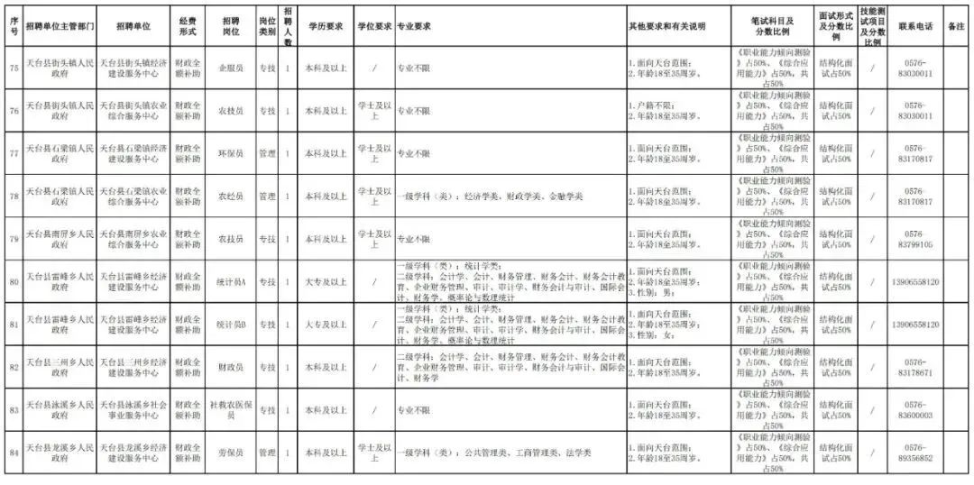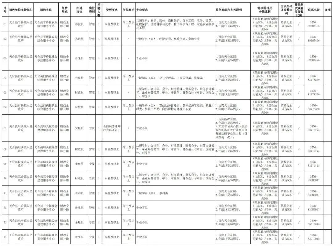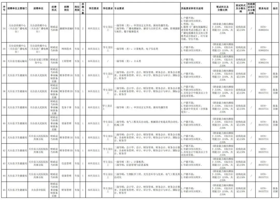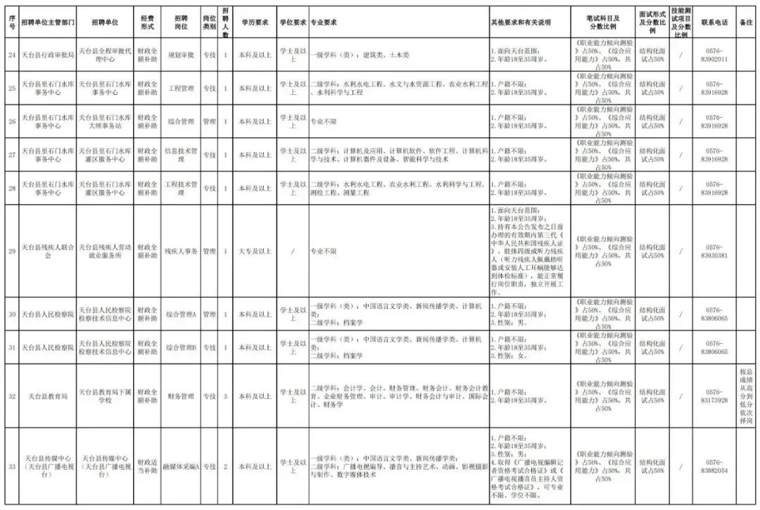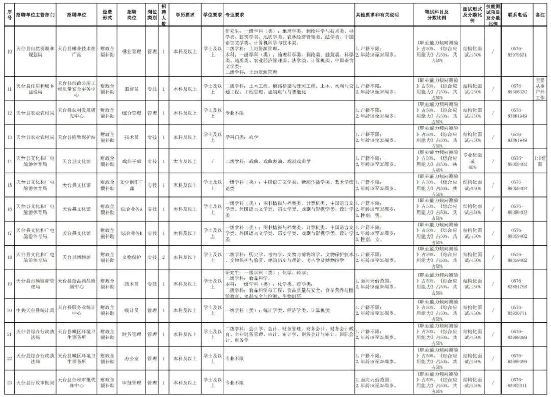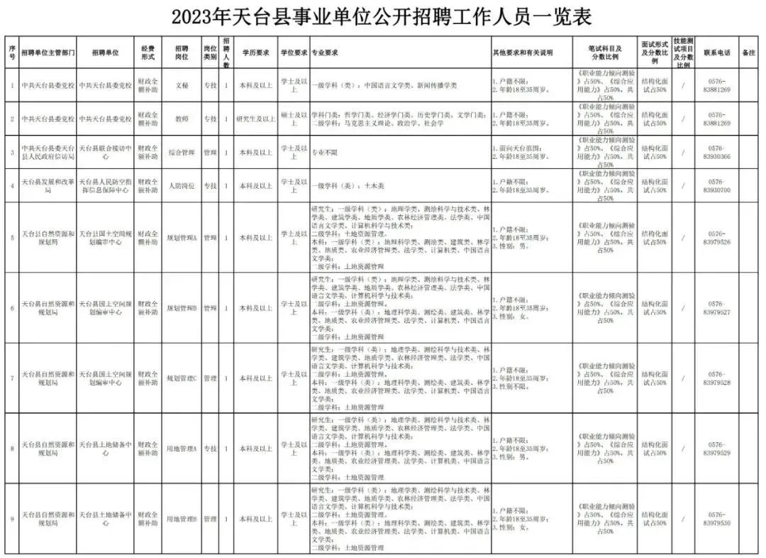 5、具备与招聘岗位要求相适应的年龄、户籍、学历(学位)、专业、任职资格、职业(执业)资格及技能等条件,具体条件以《2023年天台县事业单位公开招聘工作人员一览表》为准。